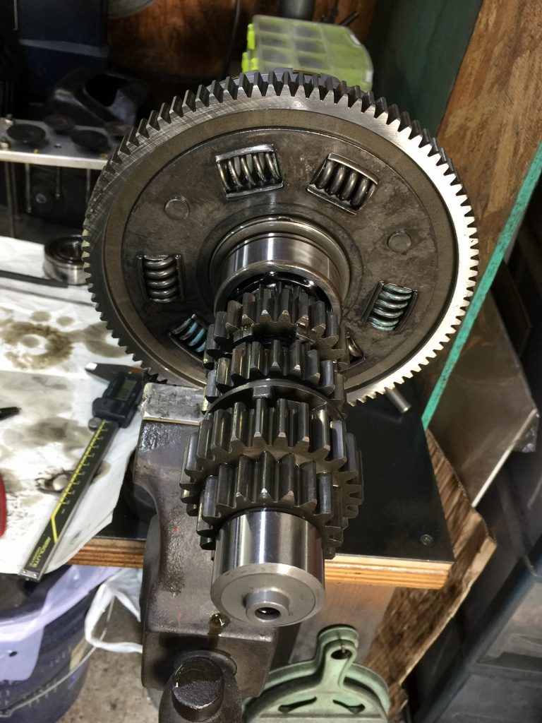アウトプットシャフトを分解します。こちらもギヤのドグは綺麗です。