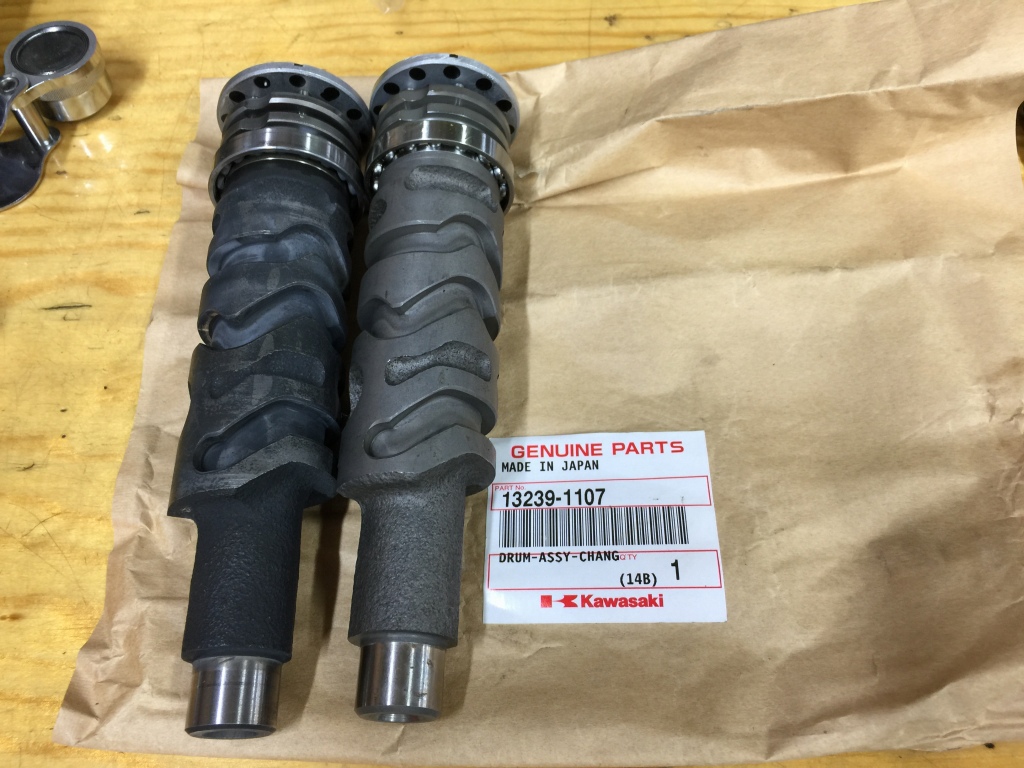 シフトドラムは摩耗しているので新品交換します。