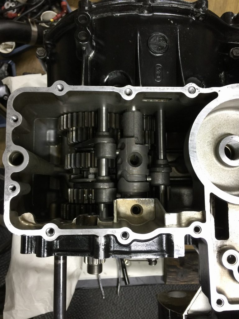 シフトフォークも組んだら、ギヤチェンジが正常か点検します。