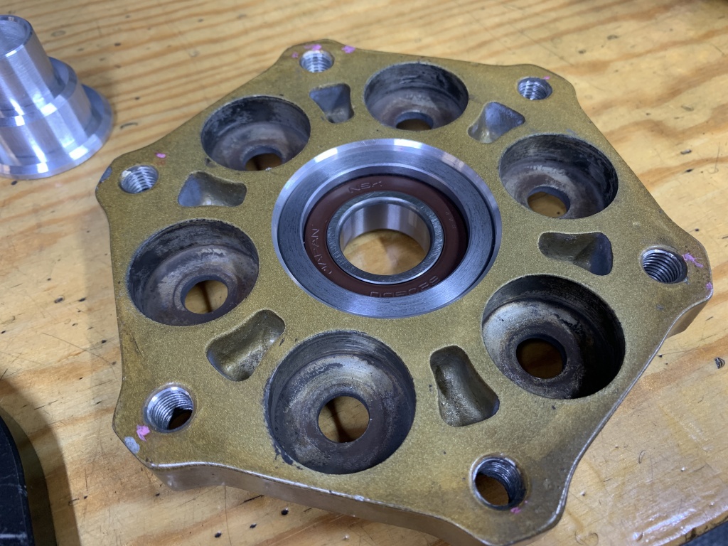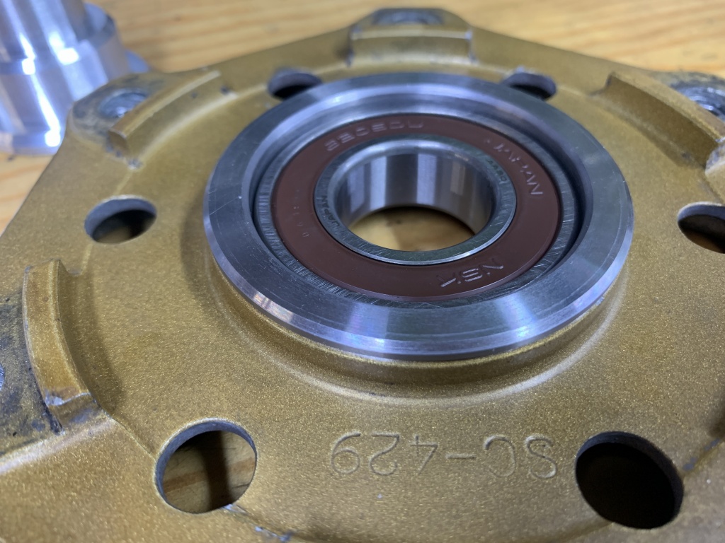 ベアリング外輪が回って大きなガタが出ていたこちらのキャリアですが、内径を拡大、スチールで製作したスリーブを焼き嵌めし、元のベアリングサイズを復元しました。