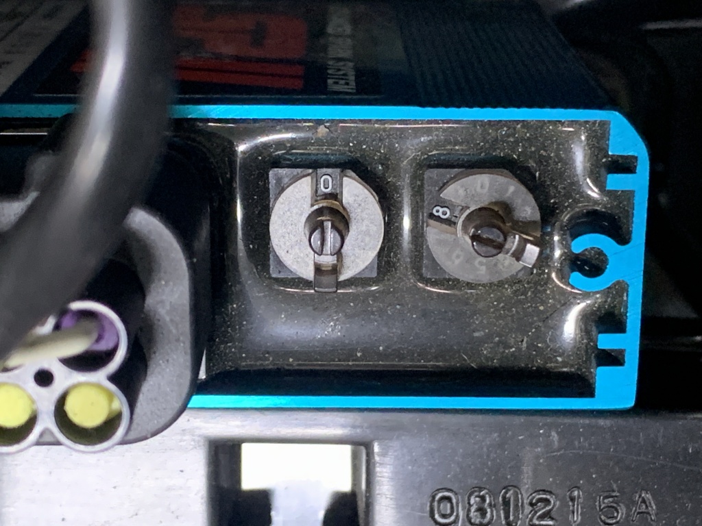 左がレブリミット、右が点火時期設定のダイヤルです。