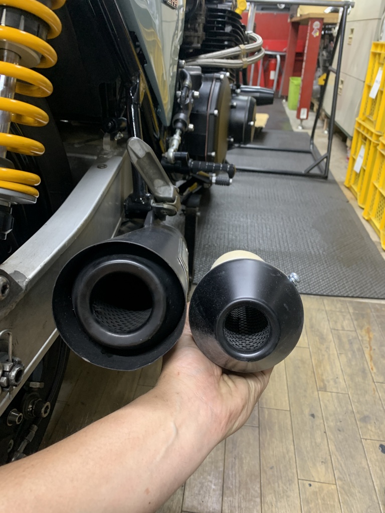 排気音を少し抑えたいとのことで、バッフルを現在のミディアムからスモールに変更することに。