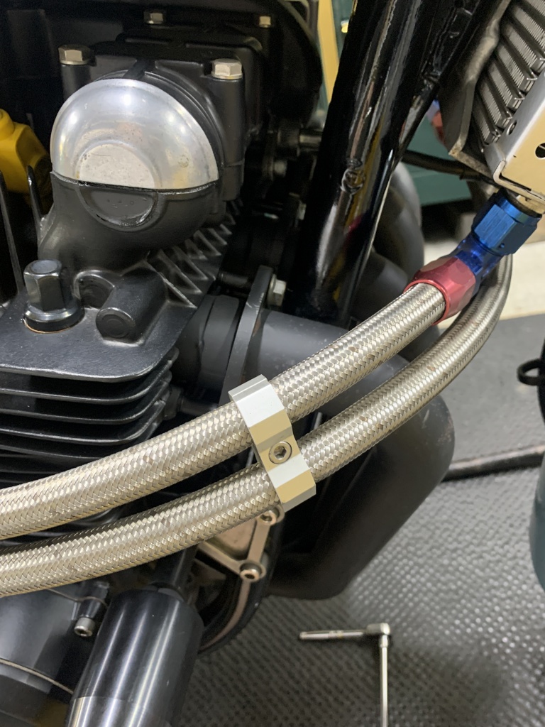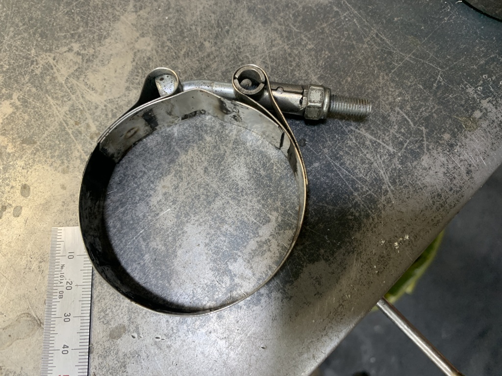 確実な締め付けのため、バンドは幅の狭いホースバンドに変更。