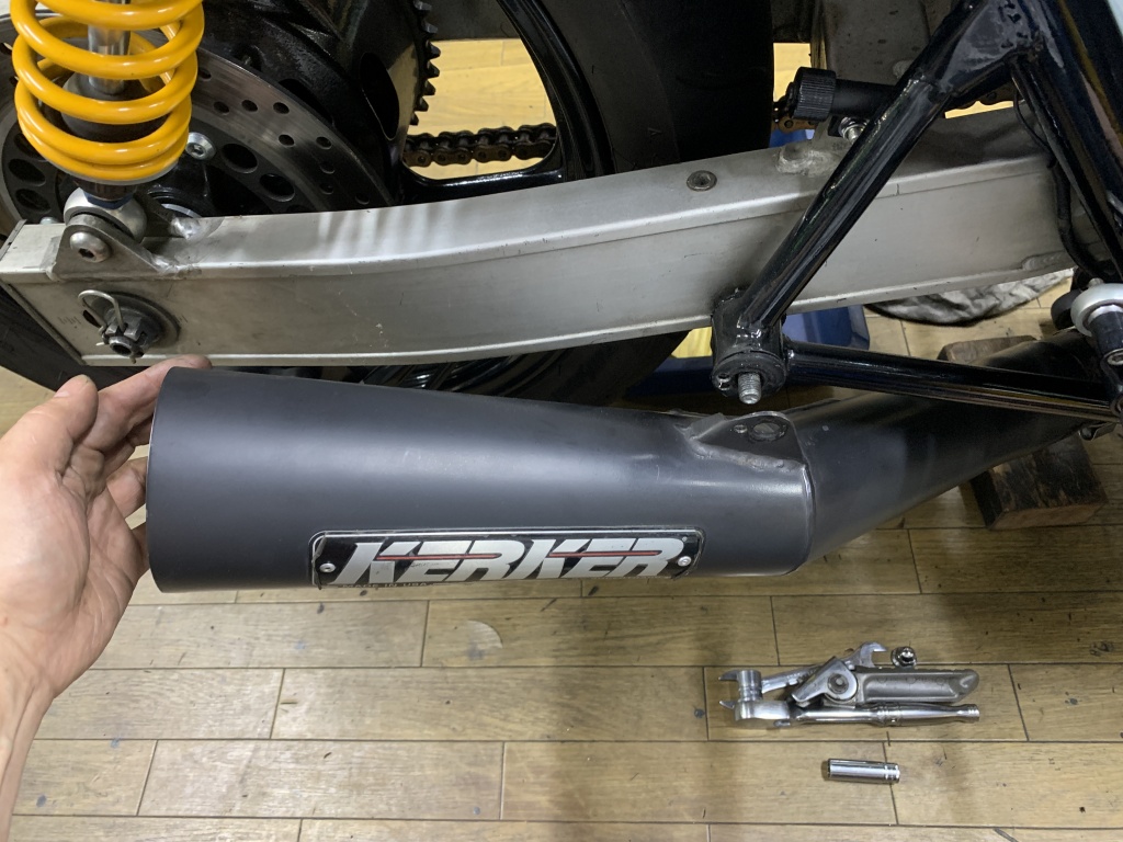 エキパイを緩めてマフラーごとずらしてみます。