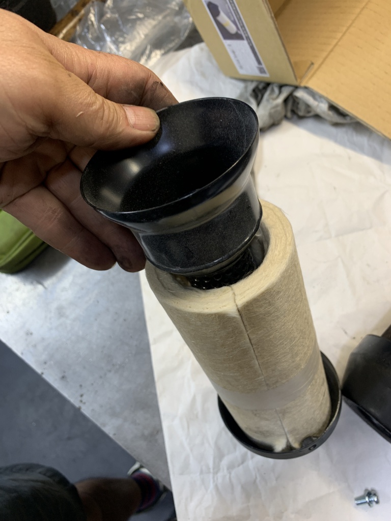 細い口は内径約φ4.2ミリ。大排気量車のガソリン流量としてはかなり不十分です。高負荷連続走行をすると燃料不足になっていたことでしょう。このフィルターは口を1段カットすれば内径の太いところが出てくる仕様です。