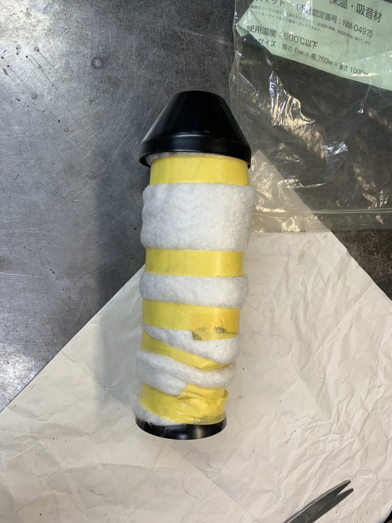 グラスウールが内部で遊ぶと耐久性が悪いので、動かないように縛った上に外側にもグラスウールを増しておきます。