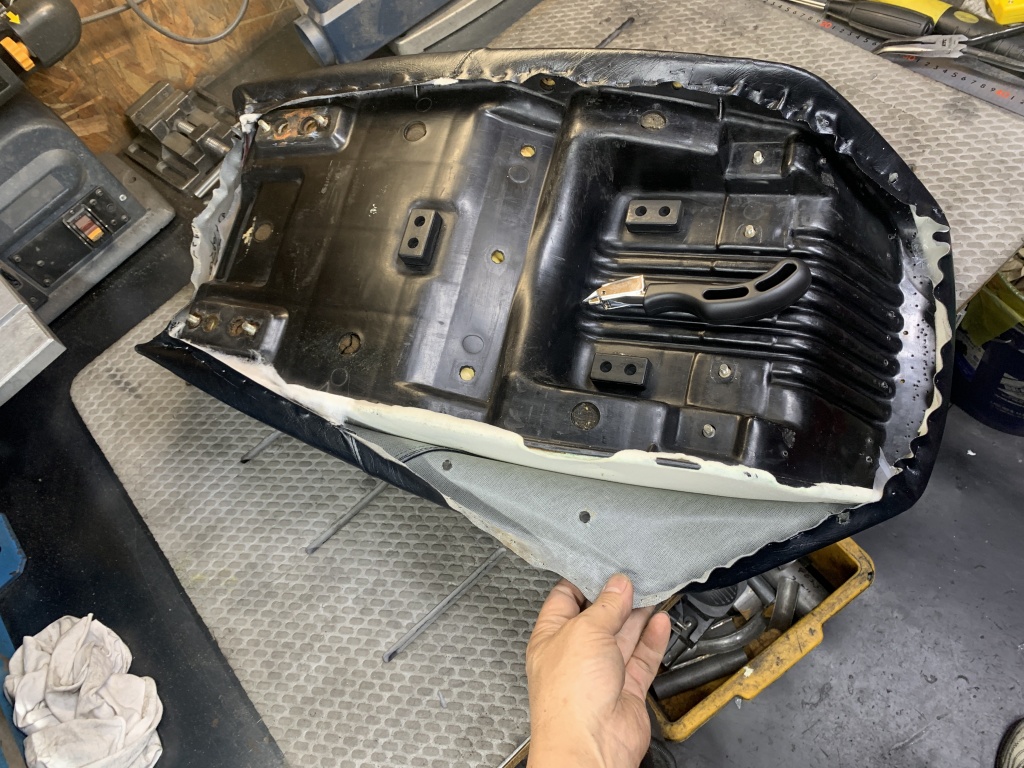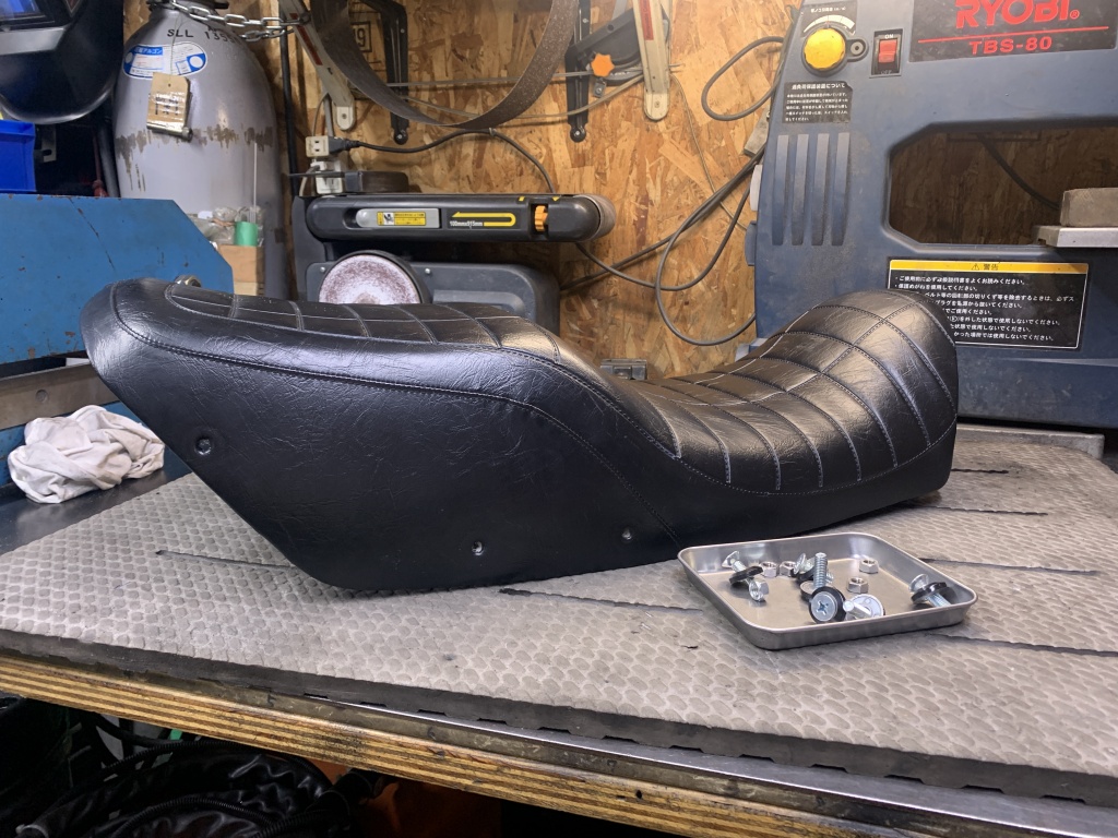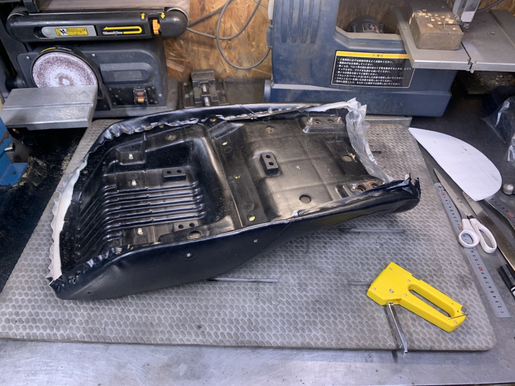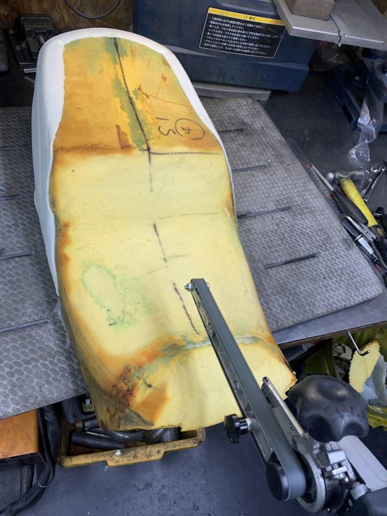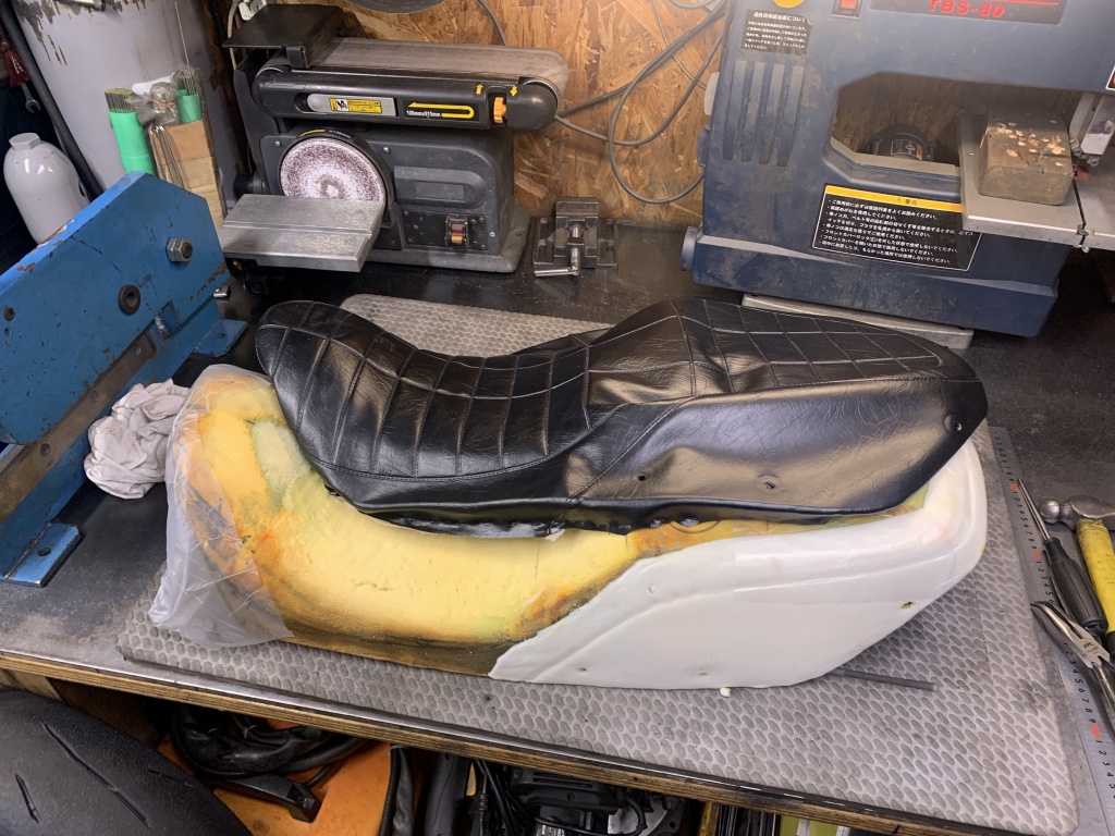 スポンジのベースは1000Rのようですね。座面はアンコ抜きしてありますがフロント部分はノーマルのままのようです。