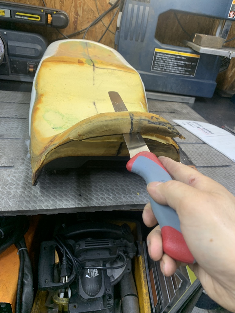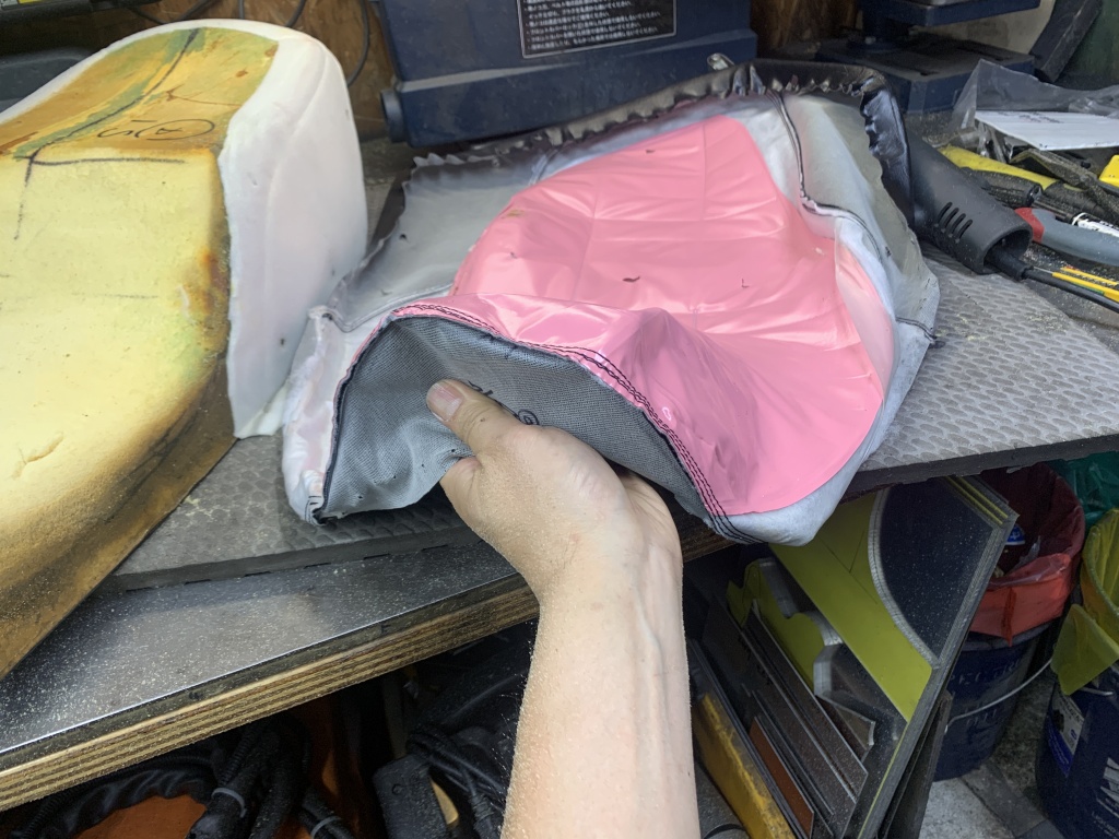 前側の加工が終了しました。リヤ側は固いスポンジの入荷を待って後日行います。