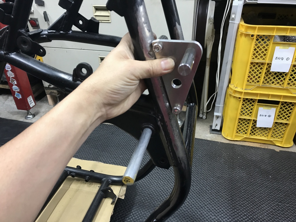 ステップはワークスタイプ、取り付けはS1と同じようにフレームにボスを溶接して取り付けます。