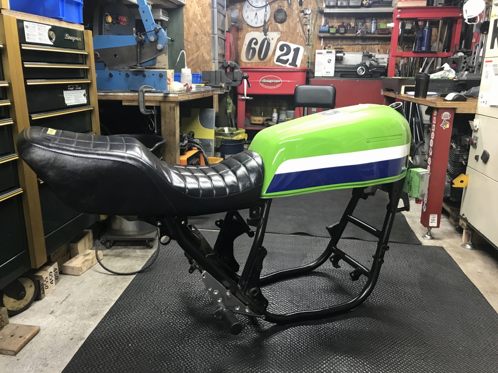 タンクとシートを乗せて、完成形をイメージします。