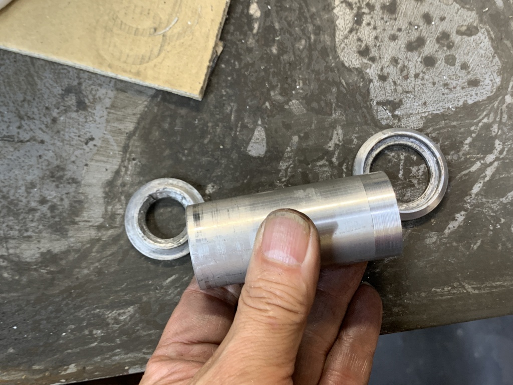 今回、周辺の肉厚が十分あったので、一回り大きなベアリングを入れる方法で修理しました。外径、奥行きともに削っています。