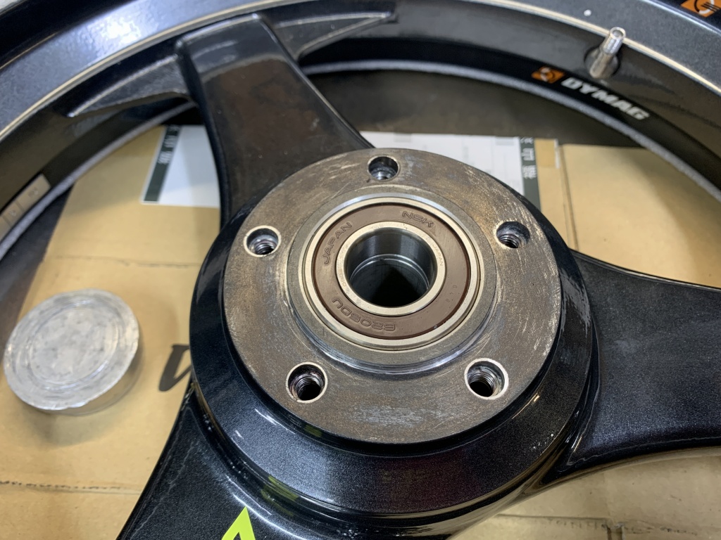 準備ができたのでハブを組み立てます。反対側のベアリングも、同じサイズでシール付きに変更します。