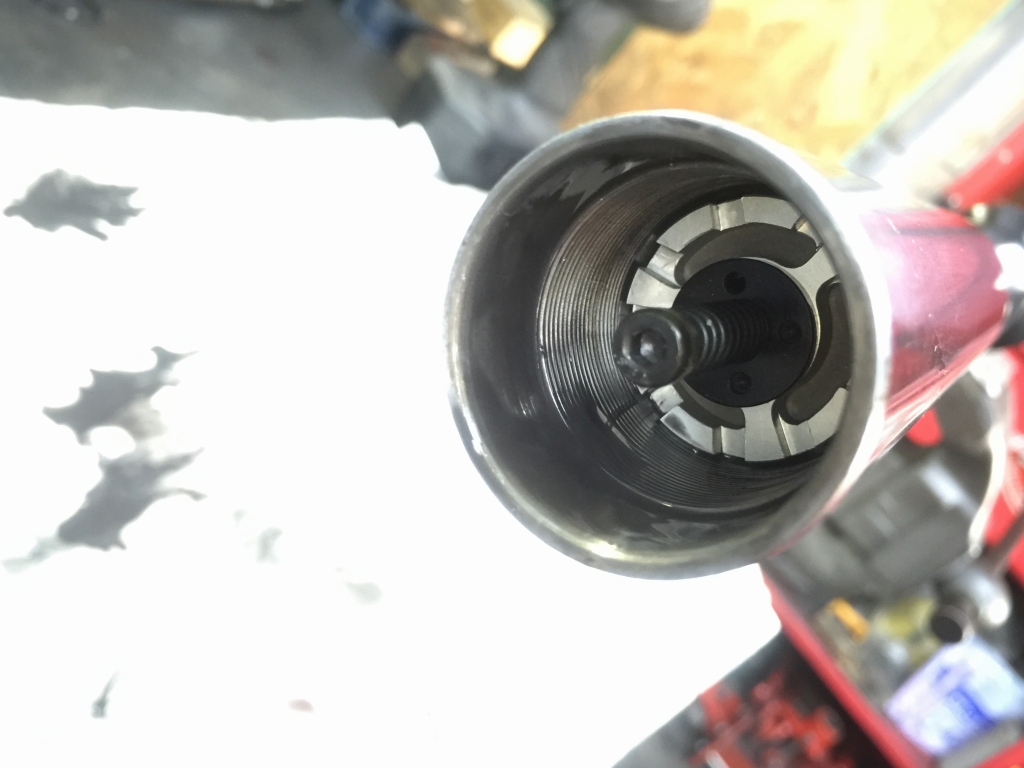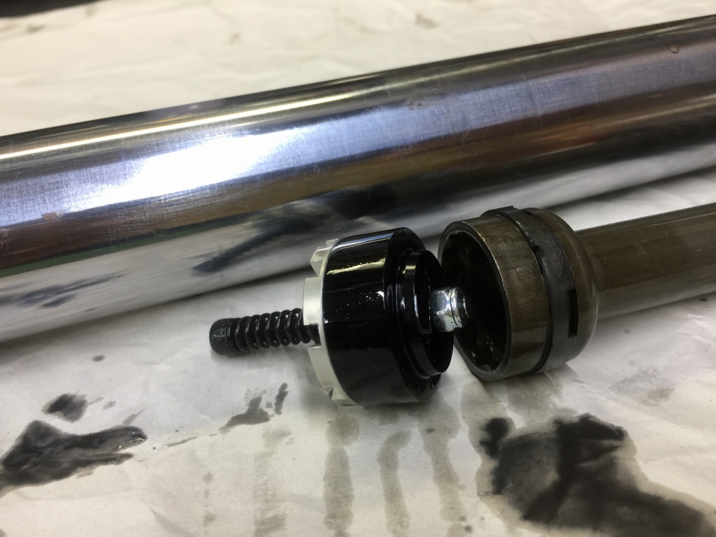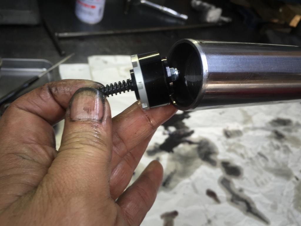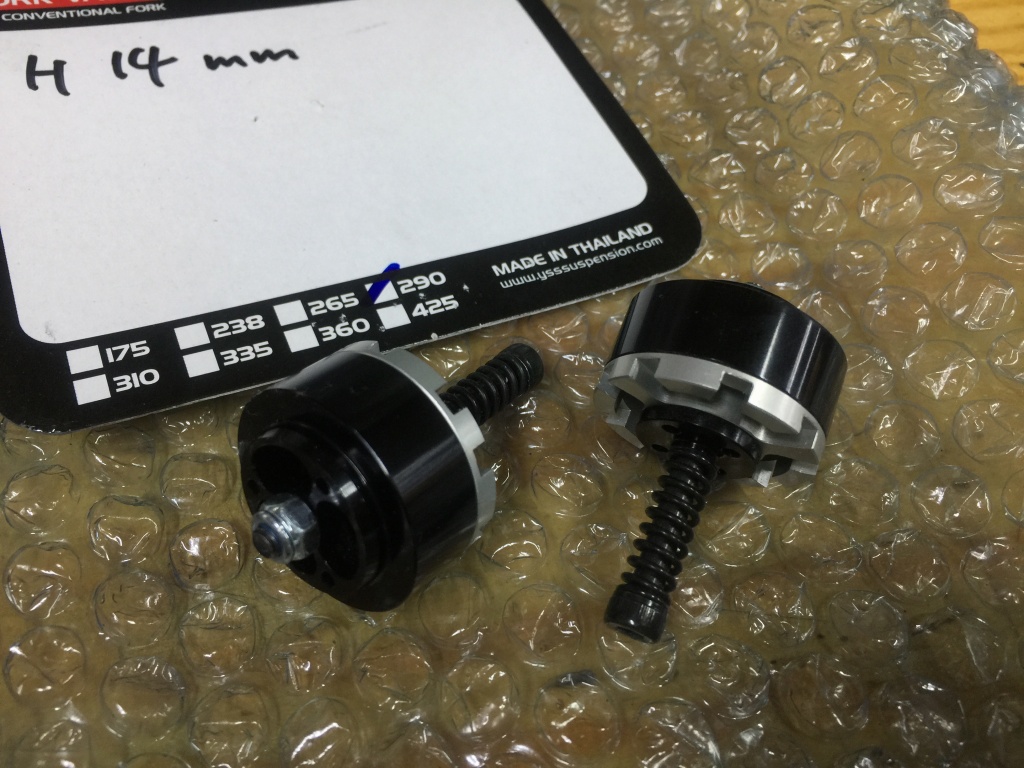 今回、スプリングはそのままに、プリロードは既存の12ミリスペーサーを外してバルブの高さ14ミリとほぼ相殺させます。