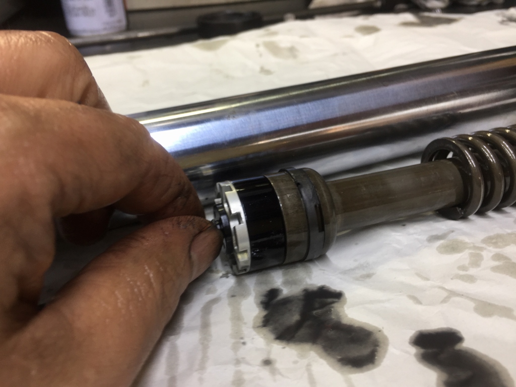 取り付け位置はスプリングとピストンロッドの間なので、だいたいこの辺に着くことになります。