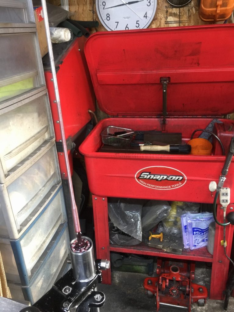 左のスプリングは、合わせて用意したレートの高いショートスプリングです。