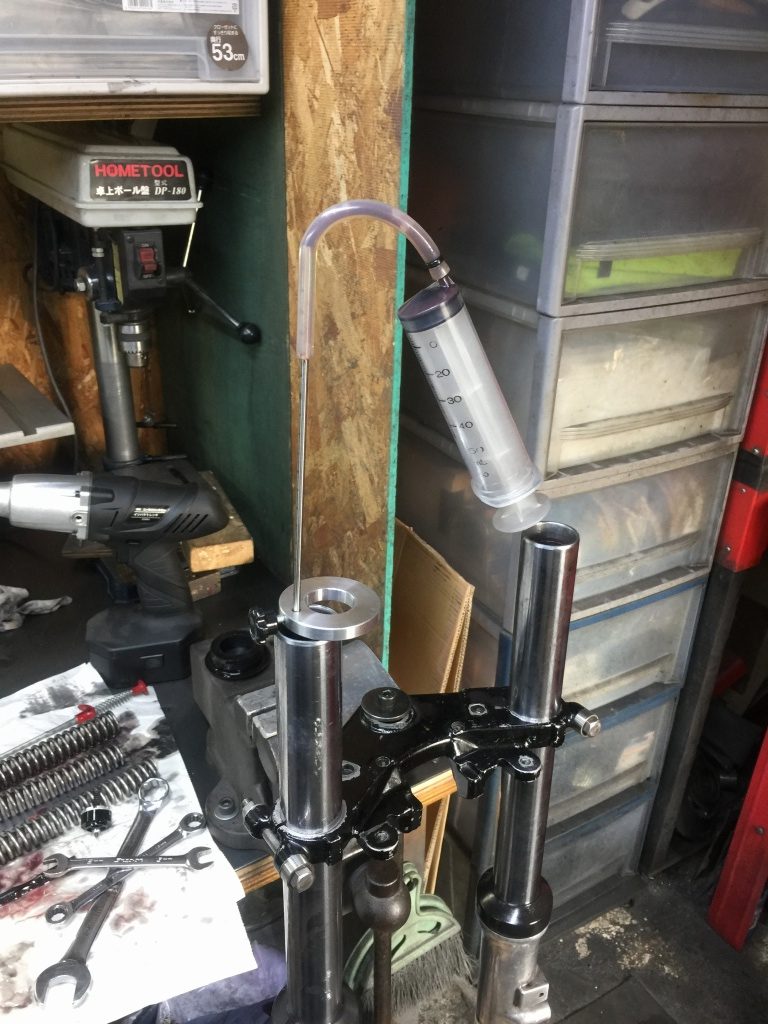 バルブを抜いて、新しいオイルでレベルを合わせます。