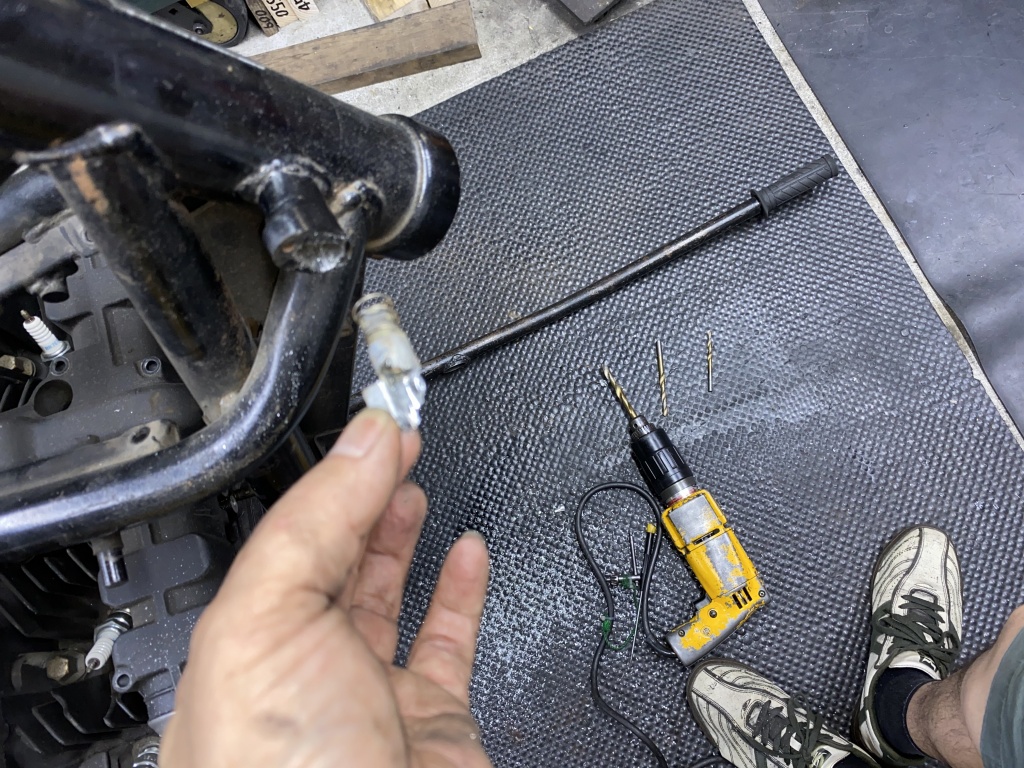 ハンドルロックはカギが無くなっており、交換するのでドリルで揉んで外します。