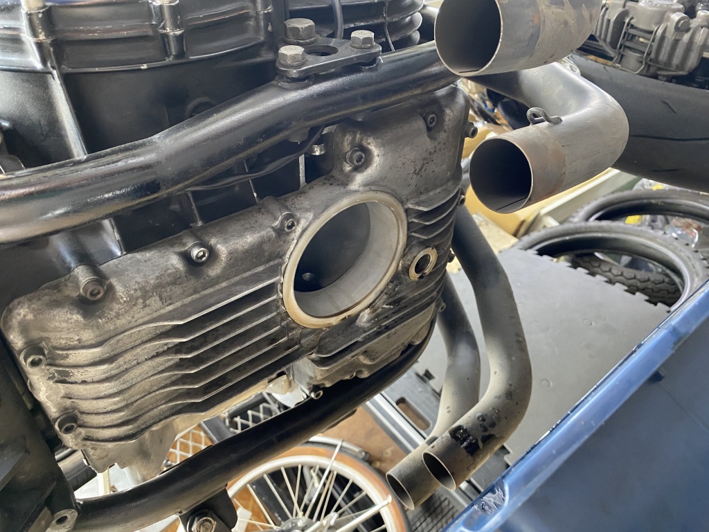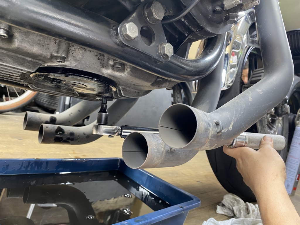 ジョイント式マフラーなので、集合部から後ろを外します。