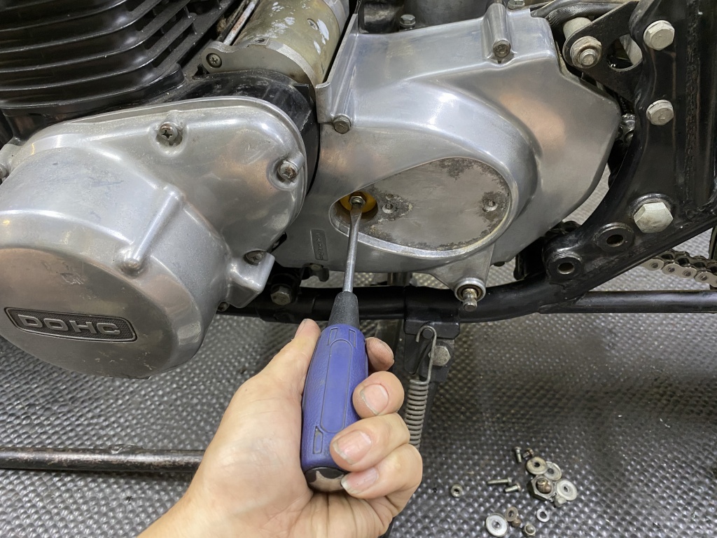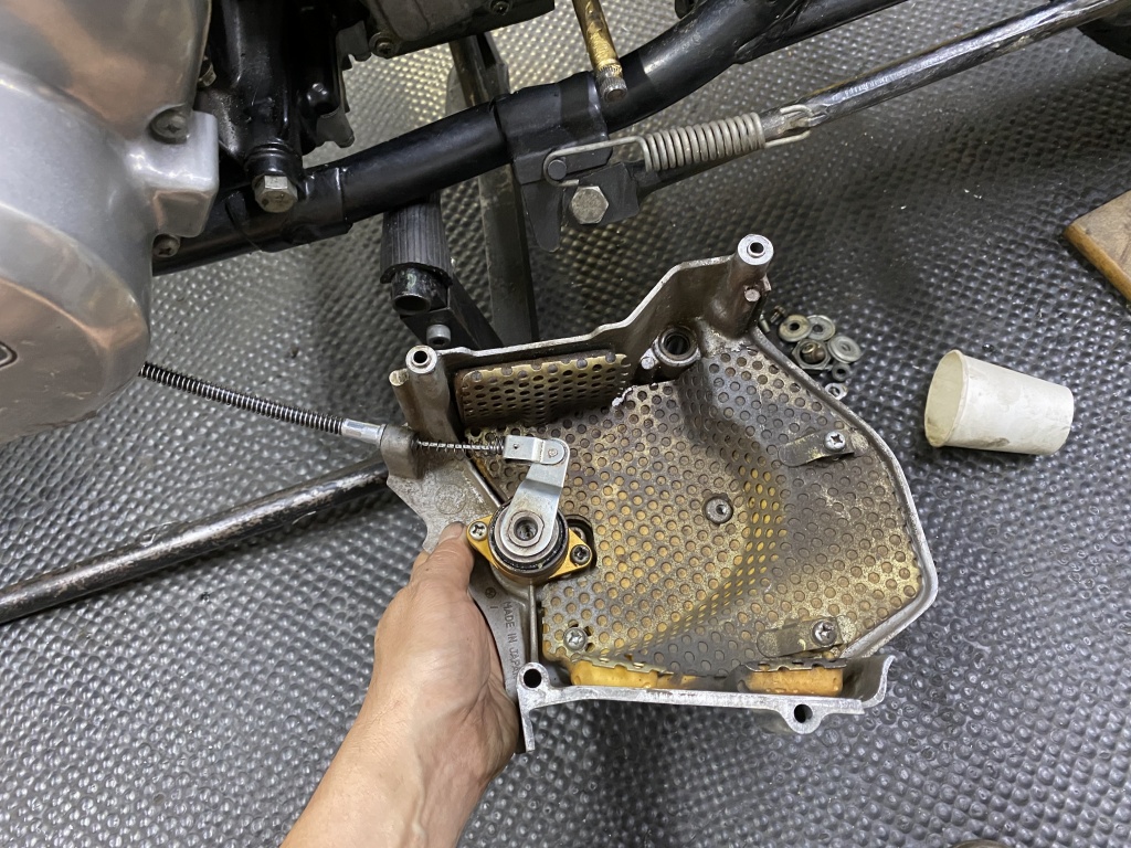 新しいクラッチケーブルをセットし、スプロケカバーを取り付けます。