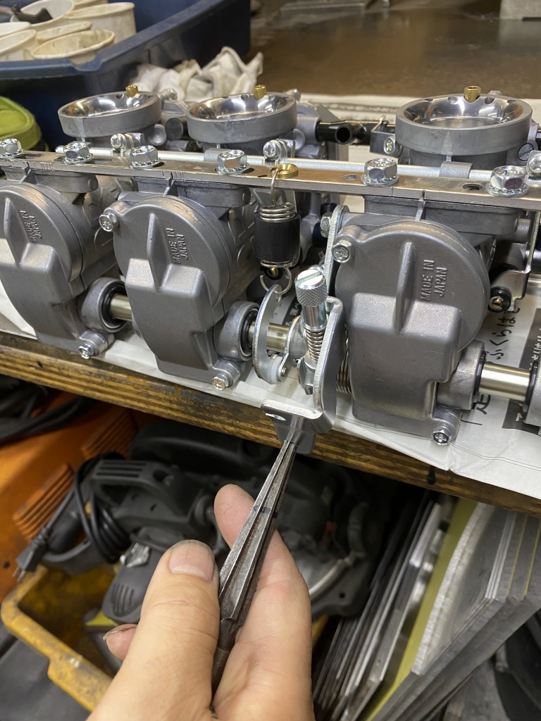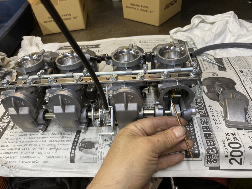 ジェット類は一旦緩めて固着を解除しておきます。こうすることで出先でのキャブセッティング時、スムーズに交換作業が可能になります。