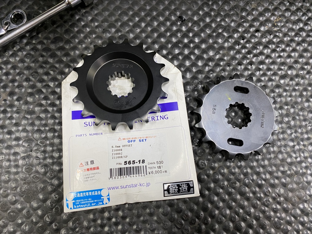 フロントスプロケはこちらのサンスター製を使用。歯数は18しかないので18Tに。