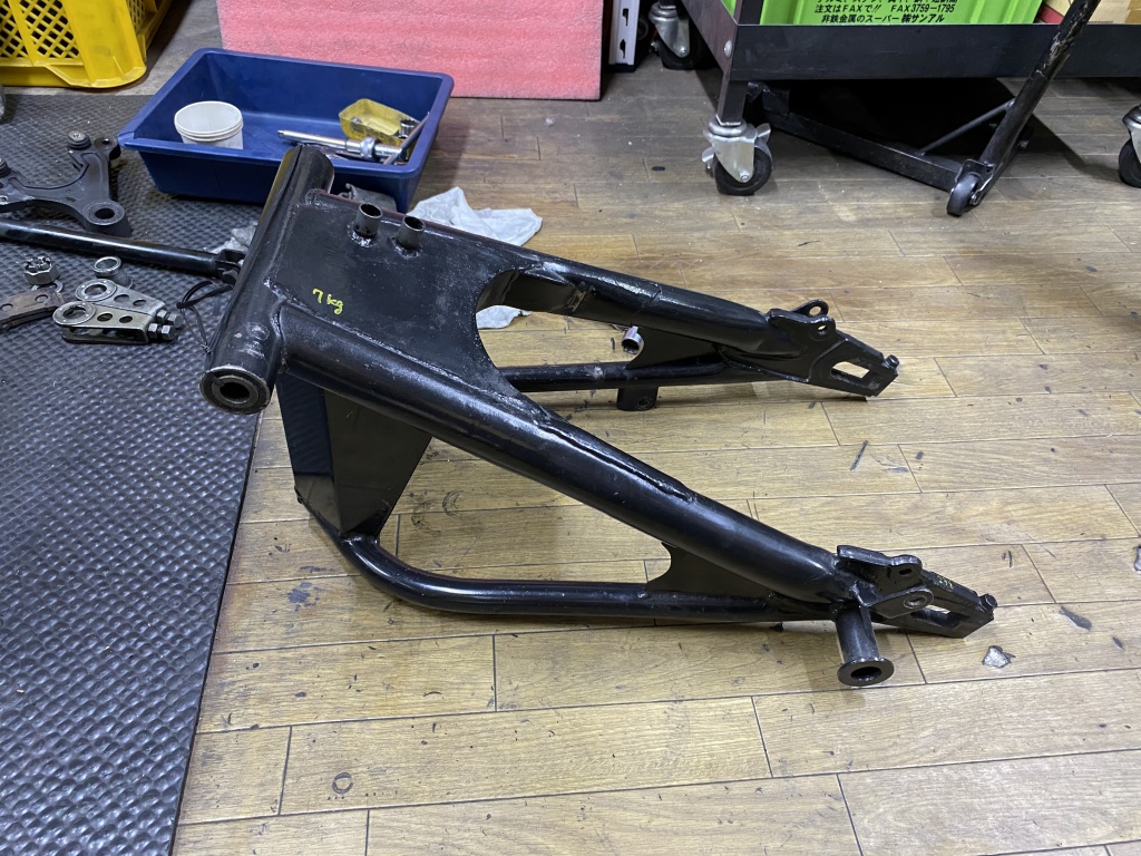 暫定でサンプルの鉄S1スイングアームを仮組して取り付け確認します。