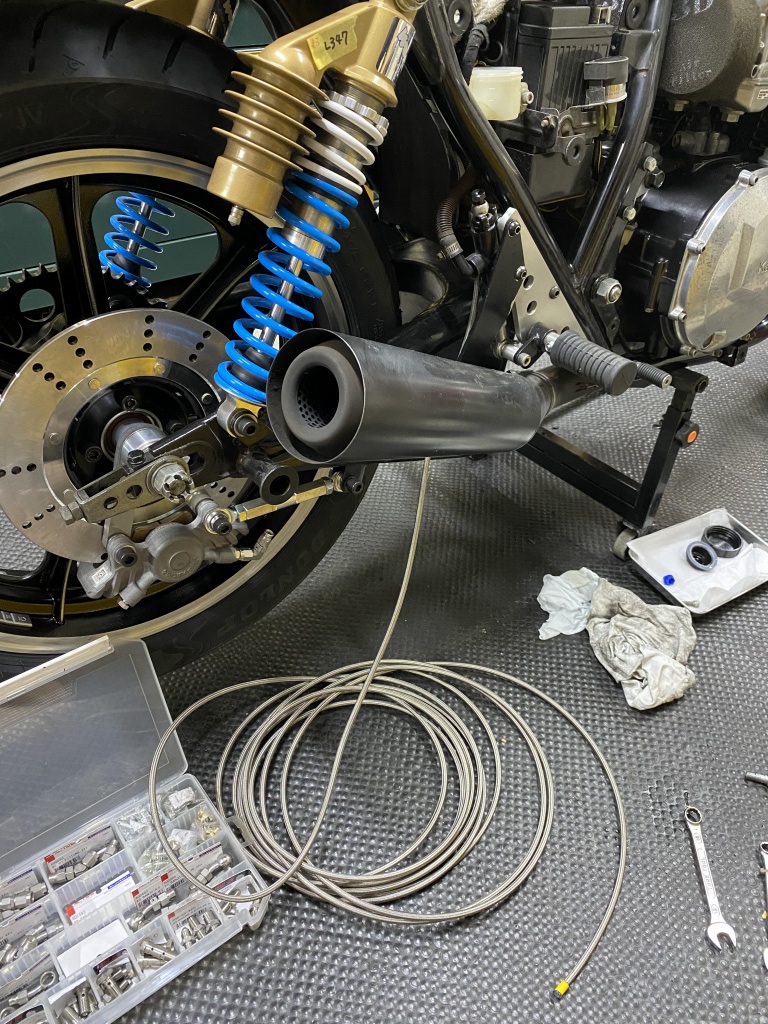 リヤブレーキホースも現車合わせで製作します。