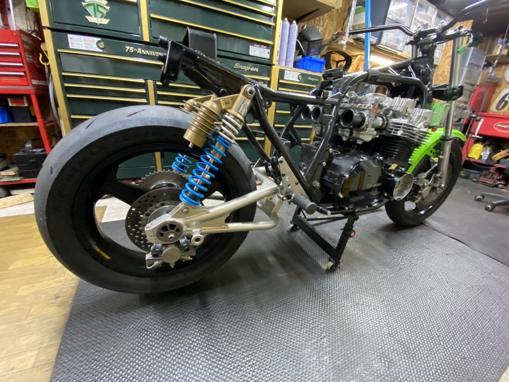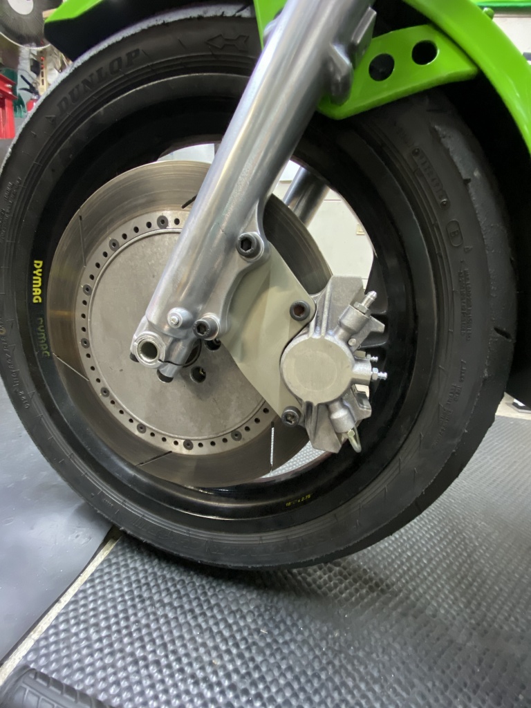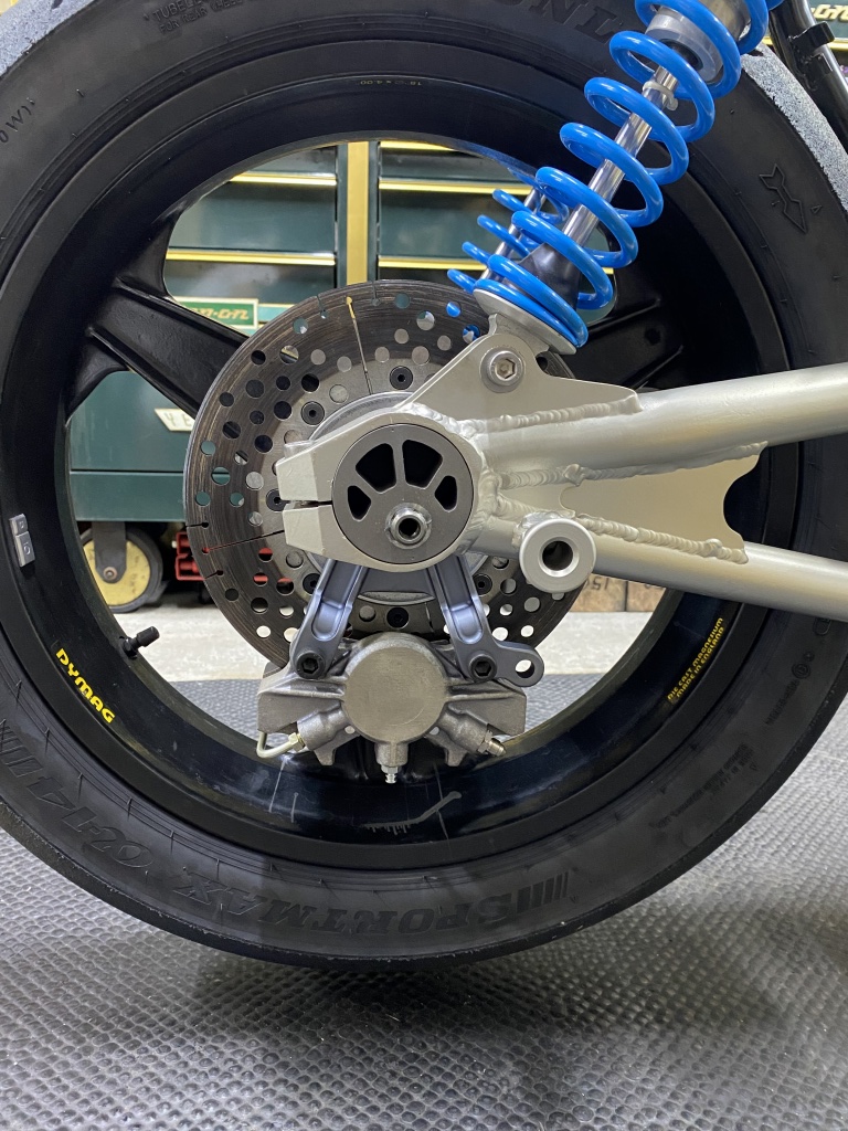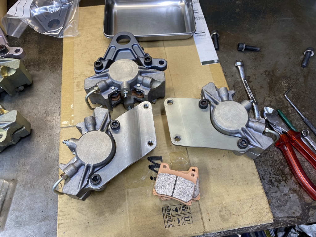 リヤはこんな感じ。リヤ専用のS1キャリパーは製作していないので、フロント用を逆さまにして使います。