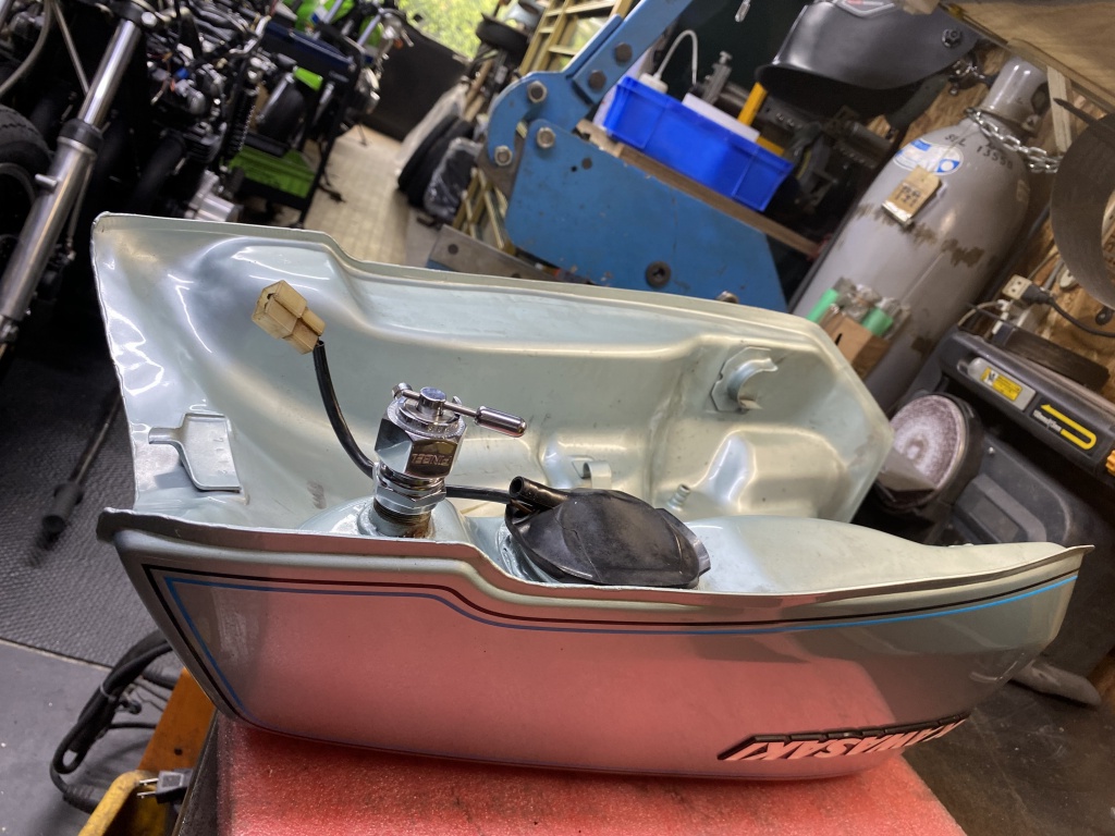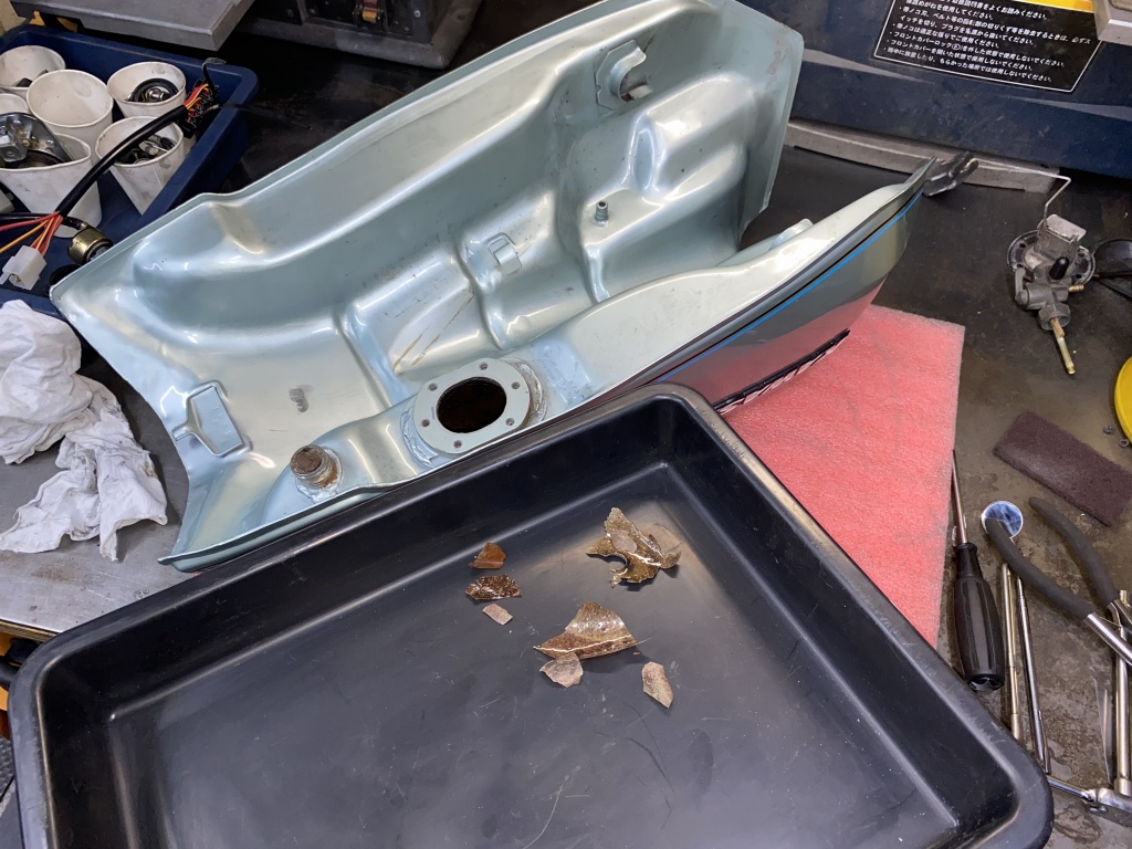 タンクを点検します。外観はきれいなのですが、中は空なのに異常に重いのです。