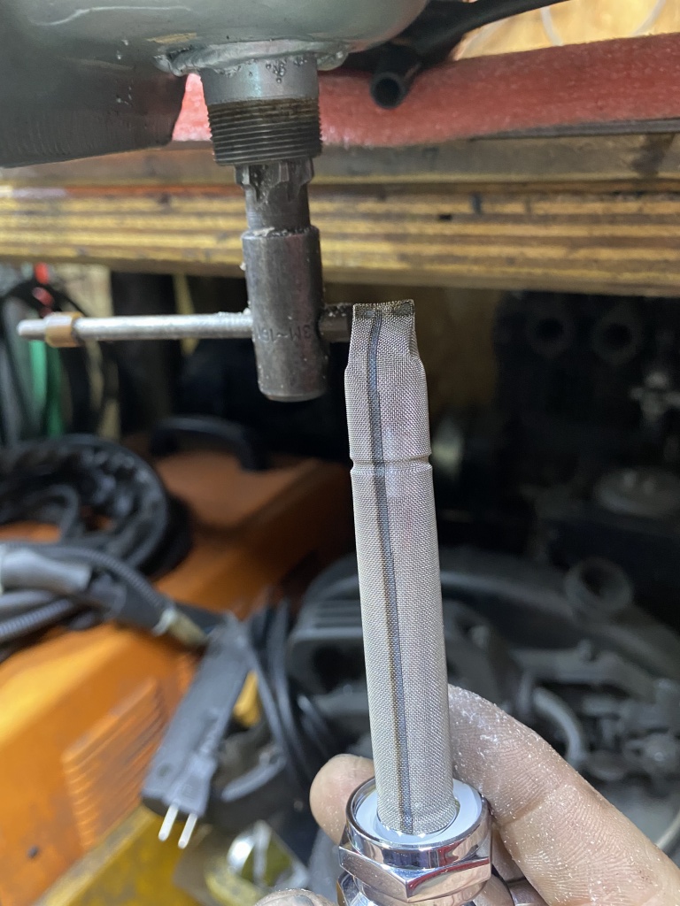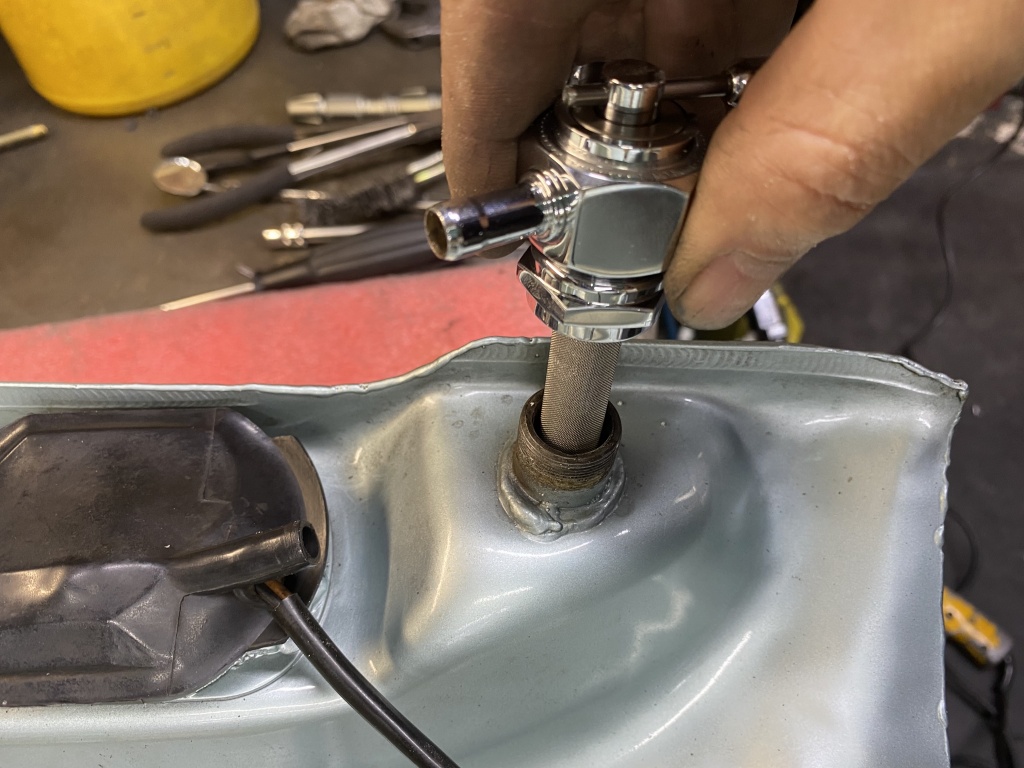 コックの穴もコーティング剤でかなり小さくなっており、新しく準備したピンゲルコックのフィルターが入らないので拡大します。