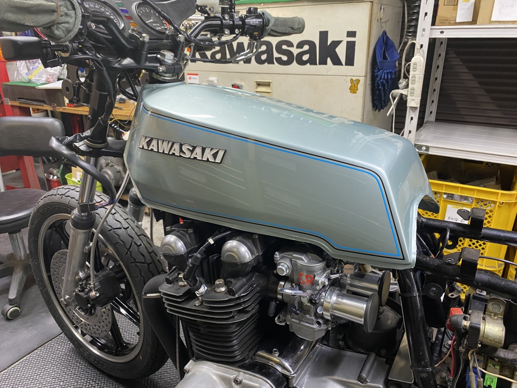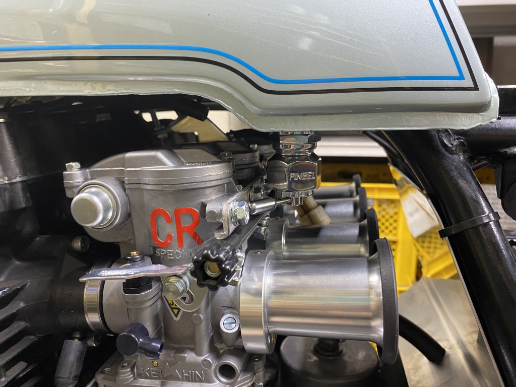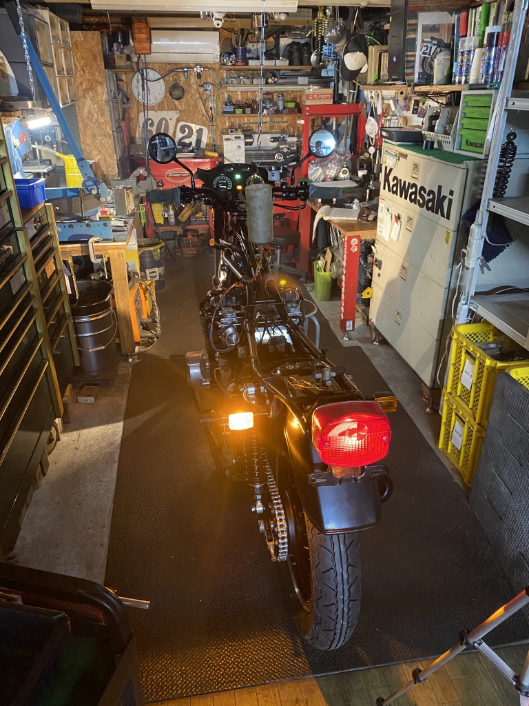 電装品が全て付いたところで電装品の動作を確認します。合わせてエンジンも始動チェック、静かで安定したアイドリングです。