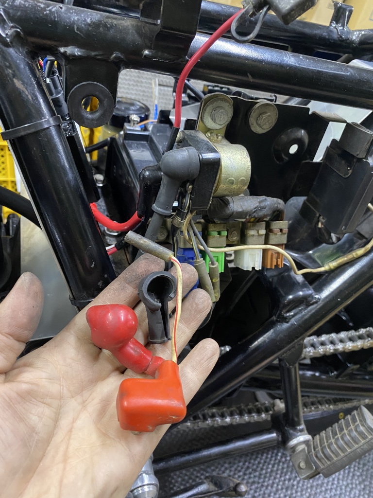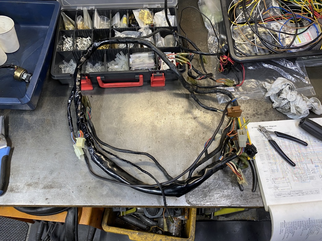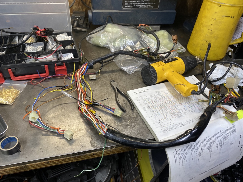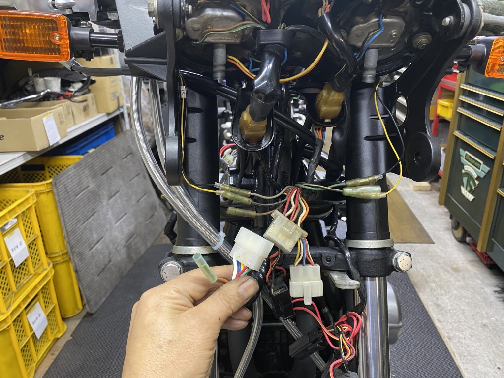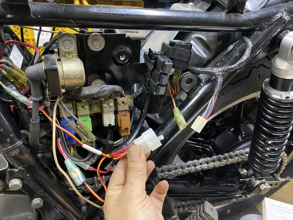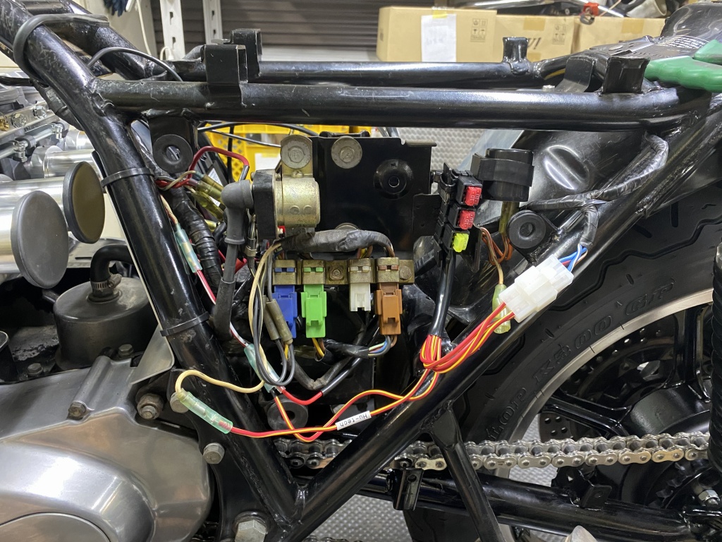 続いて電装系の取り付けです。メインハーネスは状態がいいので一部を修理して継続使用します。