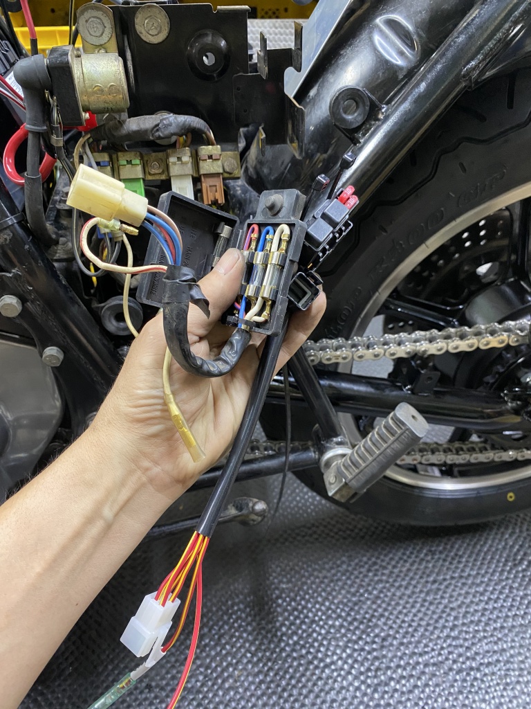 ゼファー750のレギュレーターを使うので、ハーネスは既存の物を加工して使います。