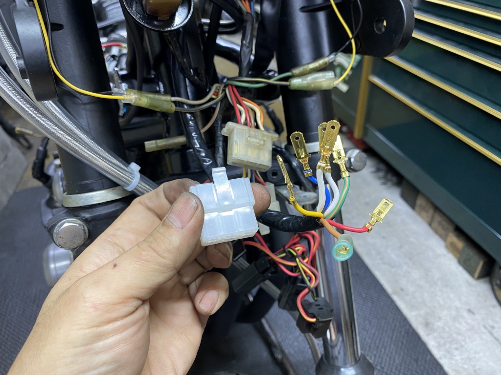 ハンドルスイッチなどの接続は変わるので、改造して適合させます。