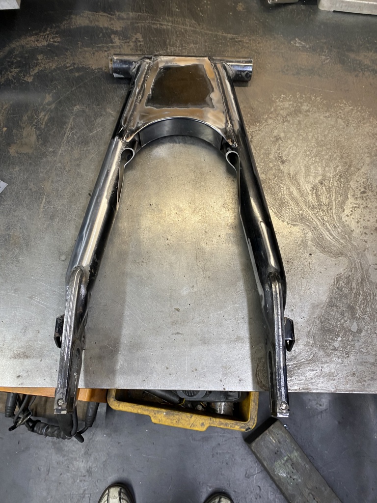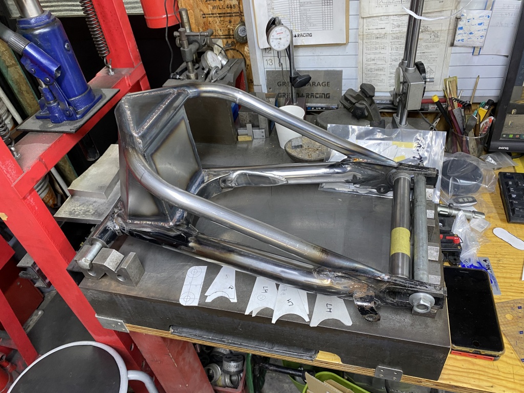 鉄S1スイングアームを製作します。先ずは素材となるZ1000J純正スイングアームを用意し、歪が無いことを確認します。