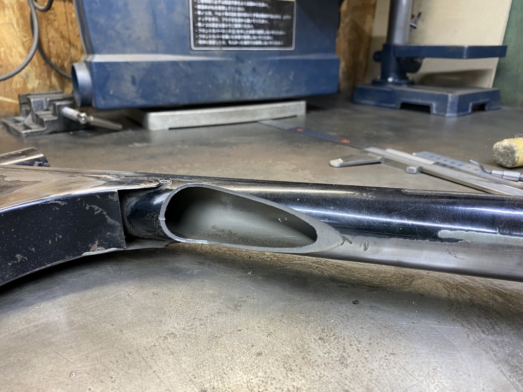 これで鉄S1スイングアームの加工が終了しました。この後ベアリング交換と塗装をして完成です。