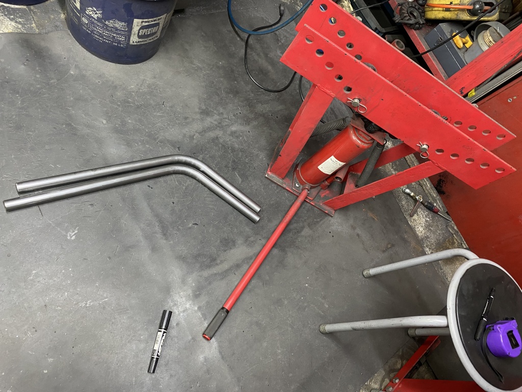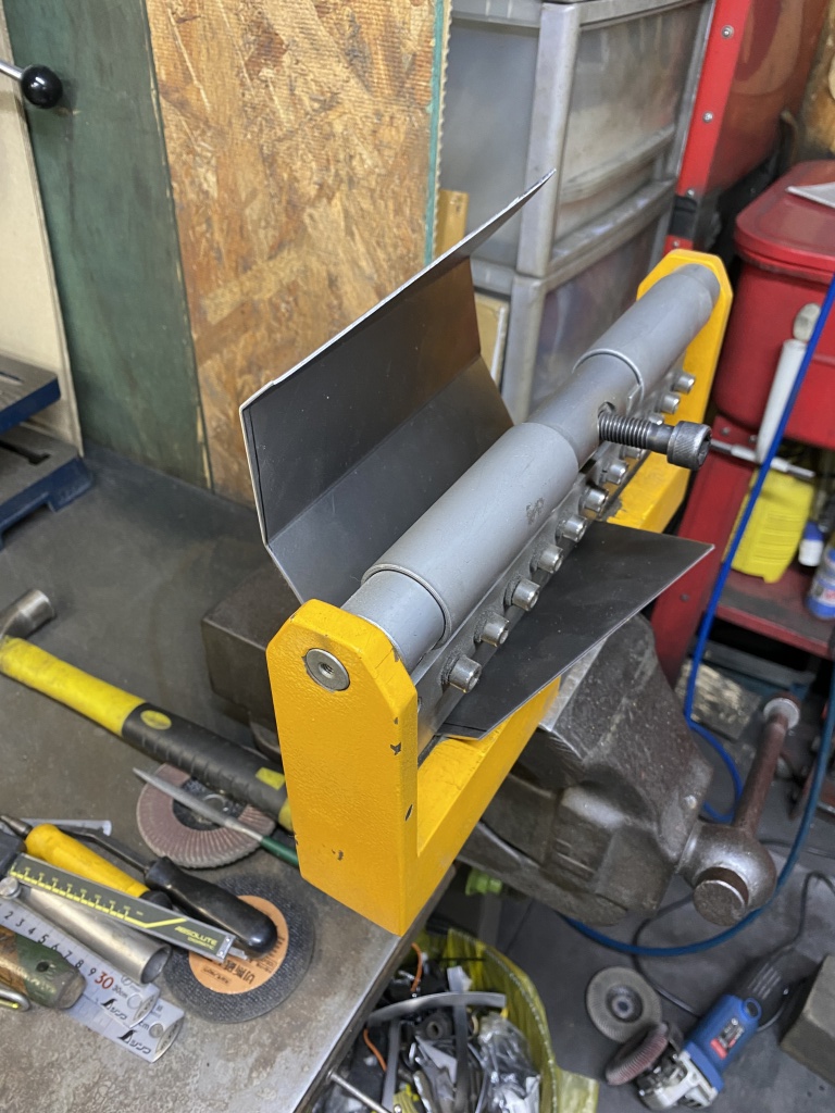 トラス補強のパイプを切り出し、ベンダーで曲げます。