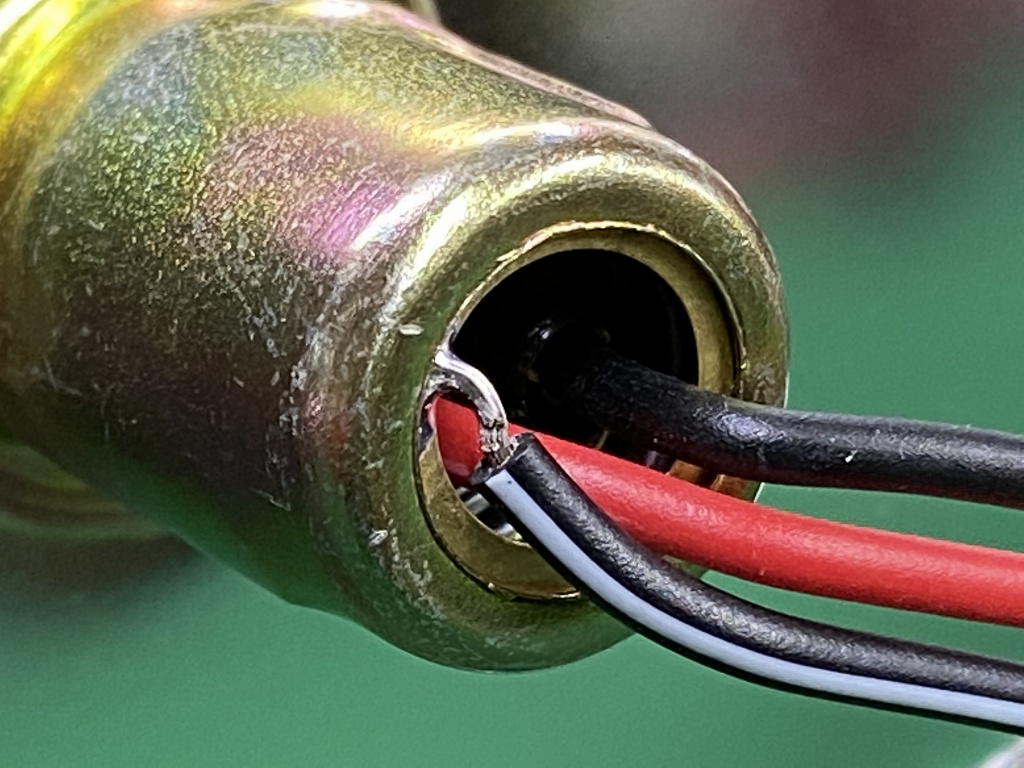 ソケット全体に収縮チューブを被せ、そこに配線を固定して補強します。