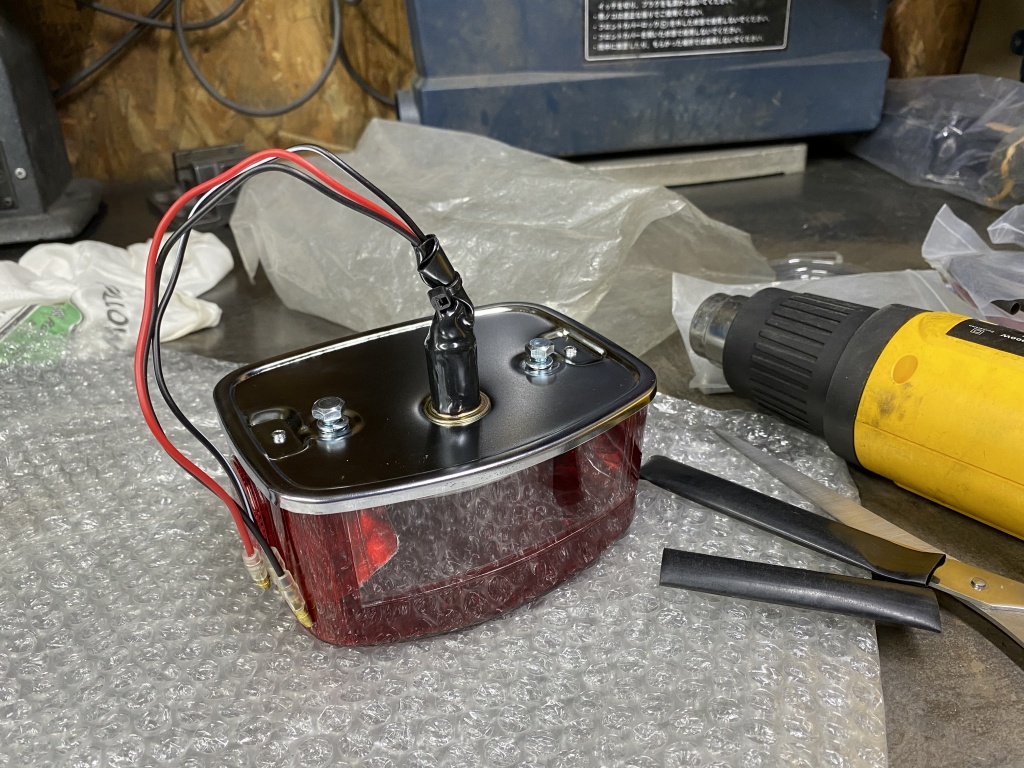 新しいテールランプを取り付けます。テールランプの裸の配線は、テールカウルのエッジと擦れるのでコルゲートチューブで保護します。