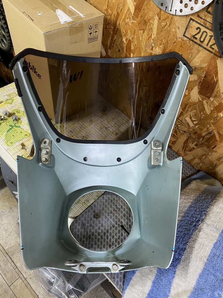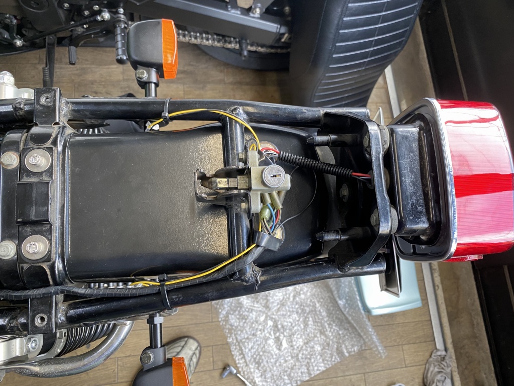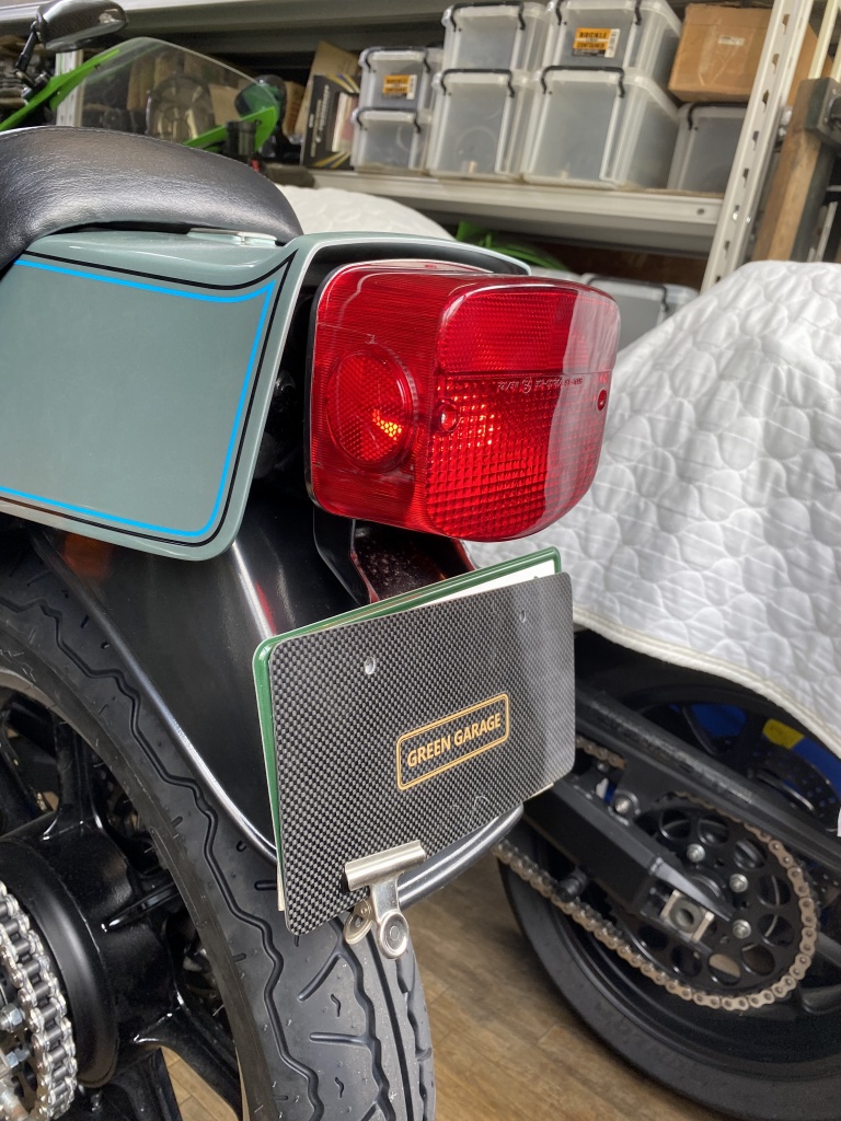最後に入荷となった残りの部品を取り付けます。テールレンズは内部の割れとベースの変形があるため、左側の社外品にASSY交換します。