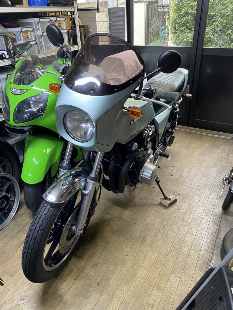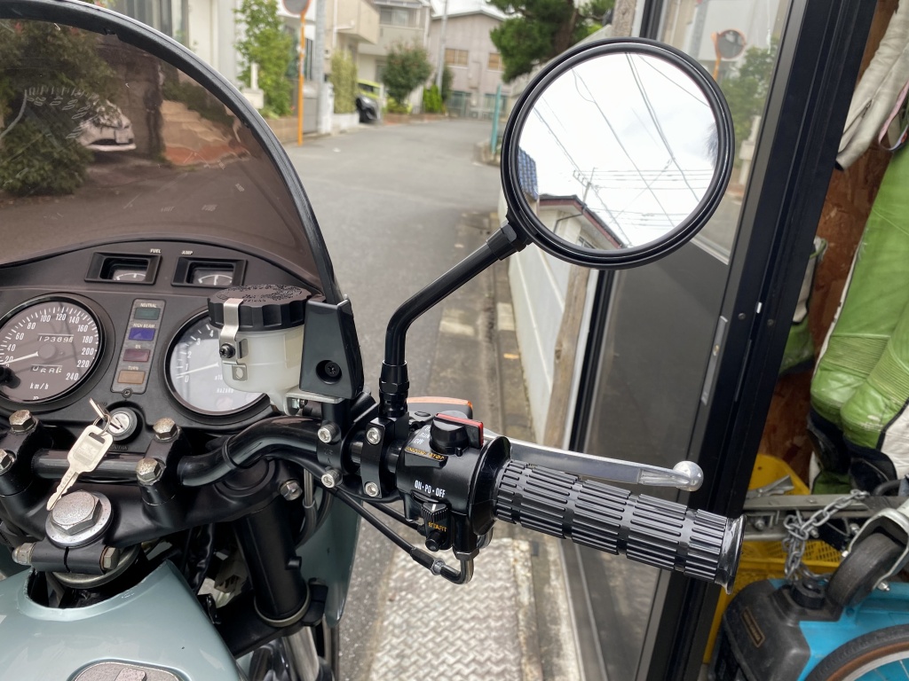 コックピットはこんな感じ。ハンドルバーはロングタイプを使用。Z1Rならではのタイトなハンドル周りのレイアウトです。