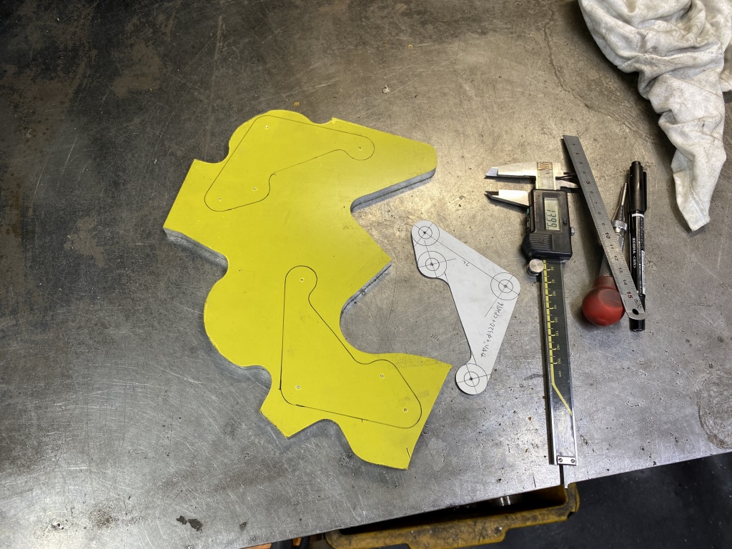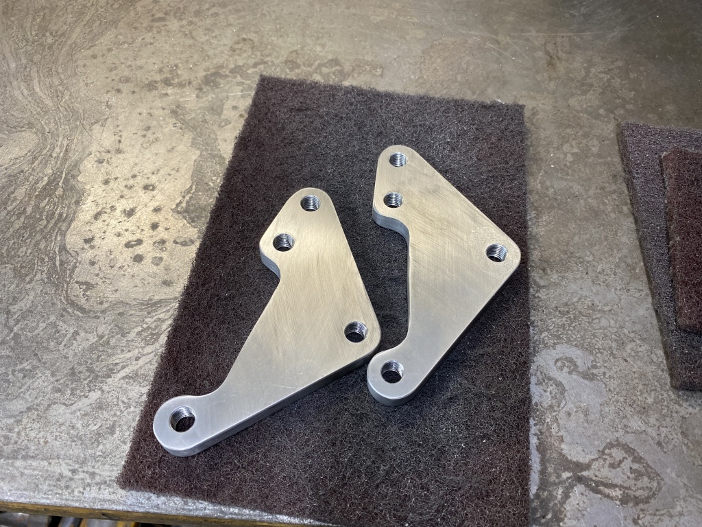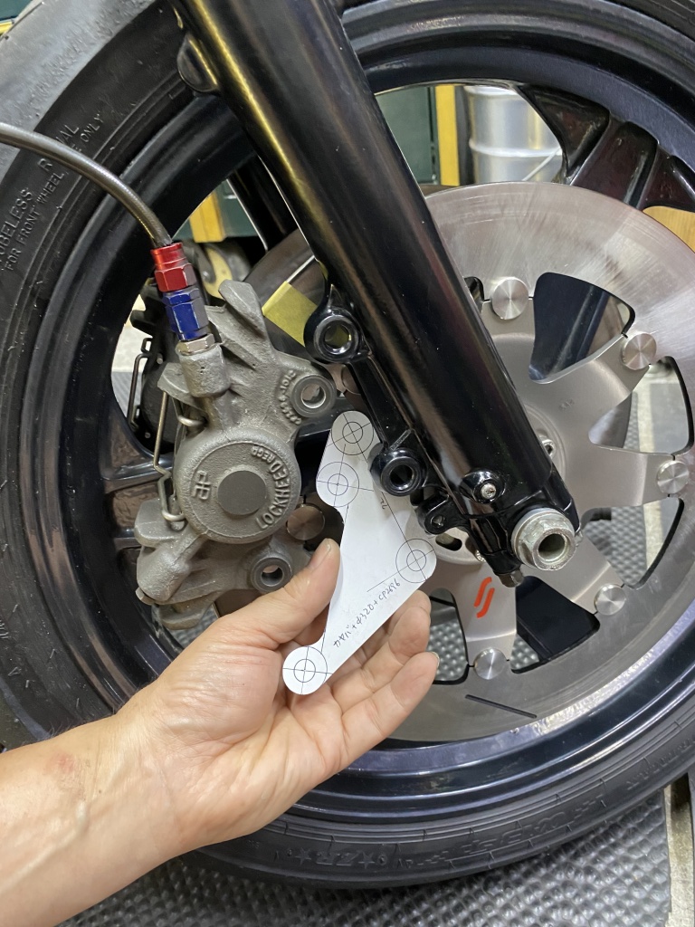 フォークをノーマルからカヤバに交換したとのことで、キャリパーサポート製作のご依頼です。