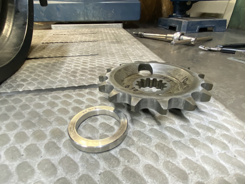 スプロケットは530へコンバートするのでワンオフ製作しますが、かなり古いダイマグなので現状はダンパーがスプロケット内にあるタイプです。ダンパーとしてのクッション性が少ないうえに、重量車なので取り付けボルト周りの強度に不安があります。
