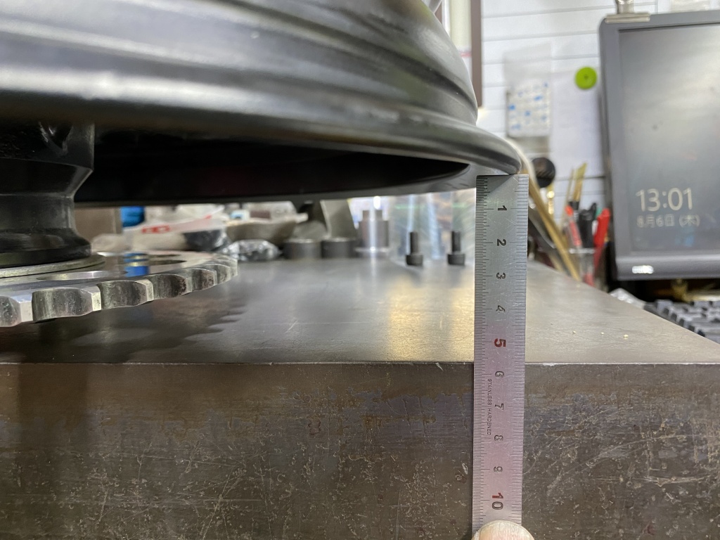 アウターはこちらのソリッドタイプに決定。インナーはお持ち込みのダイマグに合わせて、かつ、お持ち込みのスイングアームのトルクロッド受けの位置に合わせてオフセット量を決めて製作します。