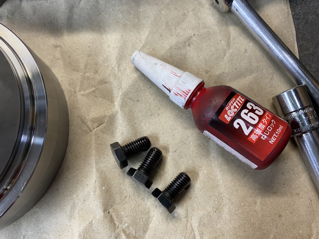 スタークラッチの取り付けは、ネジロックを塗布して締め付けます。