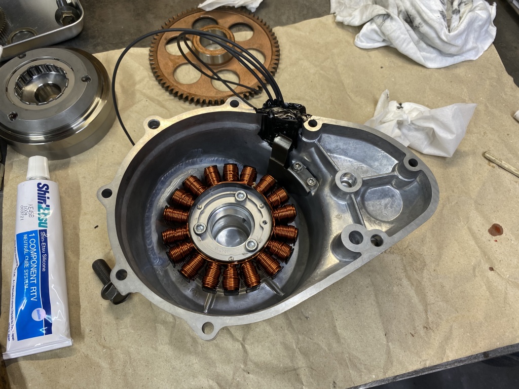 サーキットを走るので、ジェネレーターは薄型を使います。こちらがそのキットで、あるJマニアの方のオリジナルで、実績のあるキットで私もよく使用しています。ちなみにこちらはスタータークラッチ3本止めの旧型です。