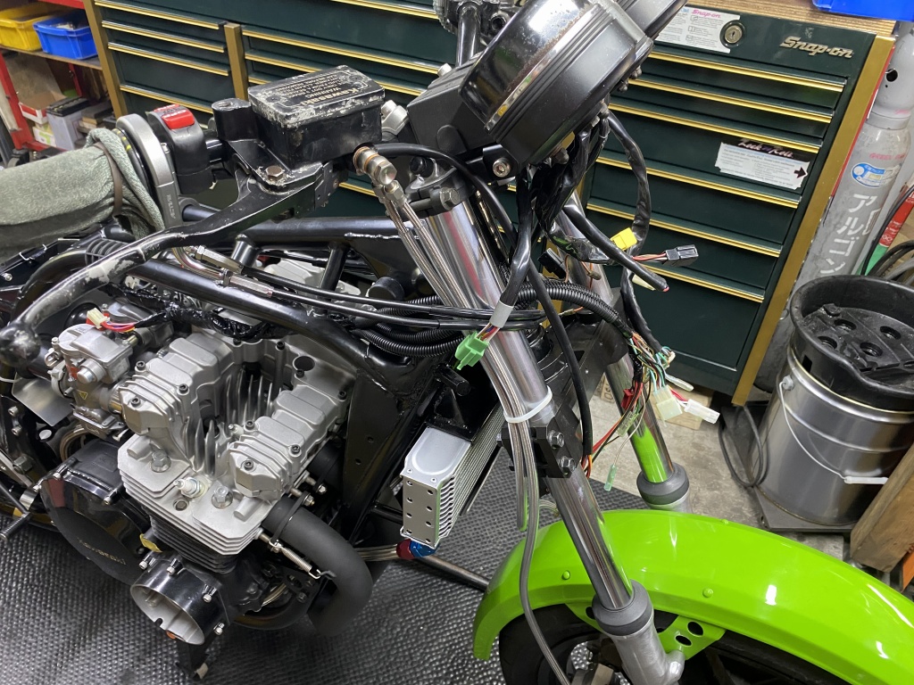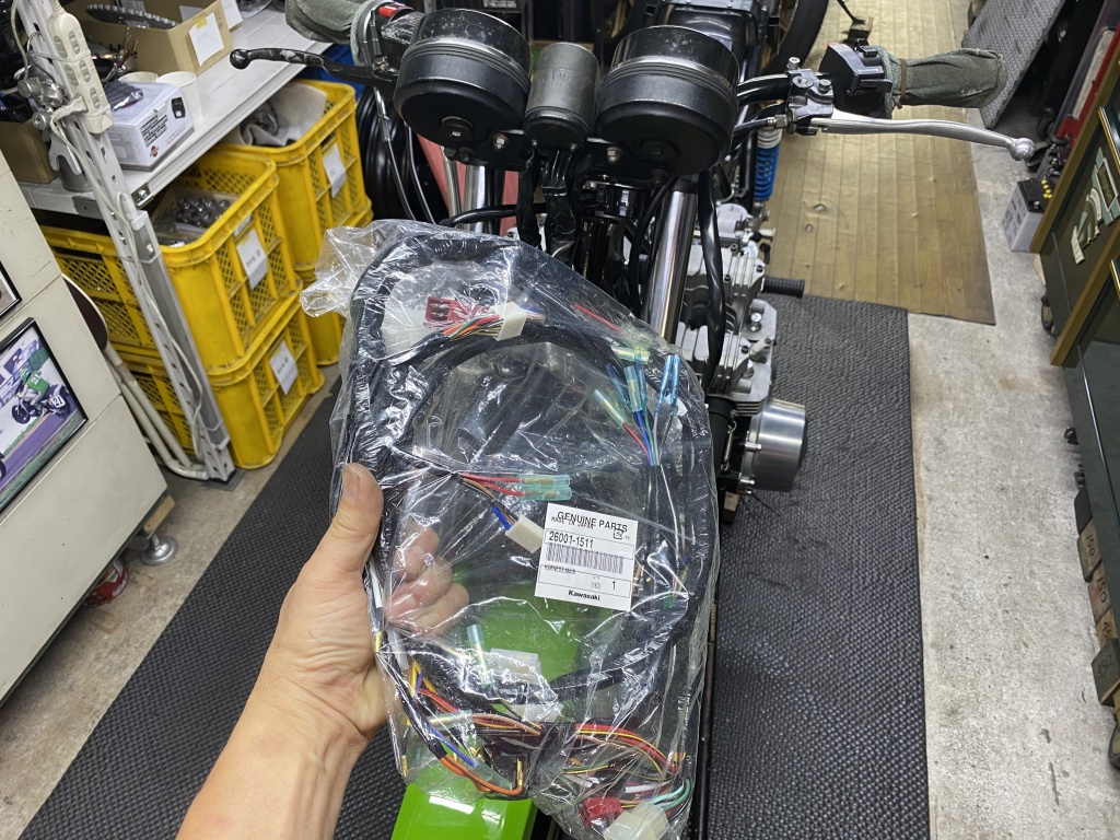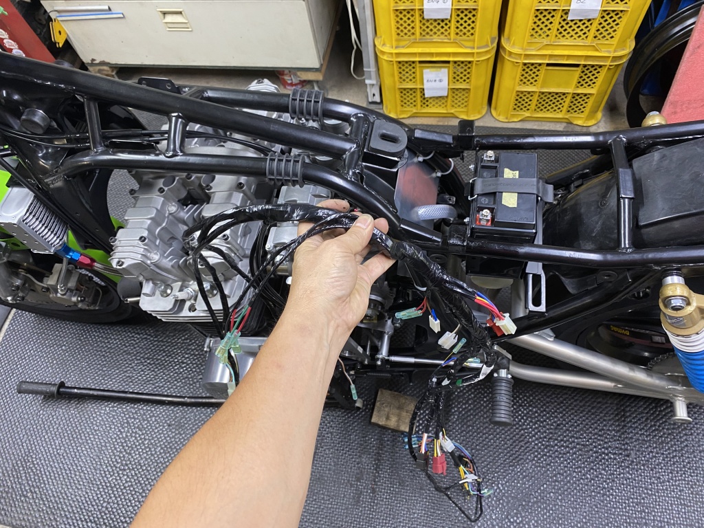 次に、電装品をまとめて装着します。メインハーネスは信頼性のある純正品のZ1000R2用を使います。