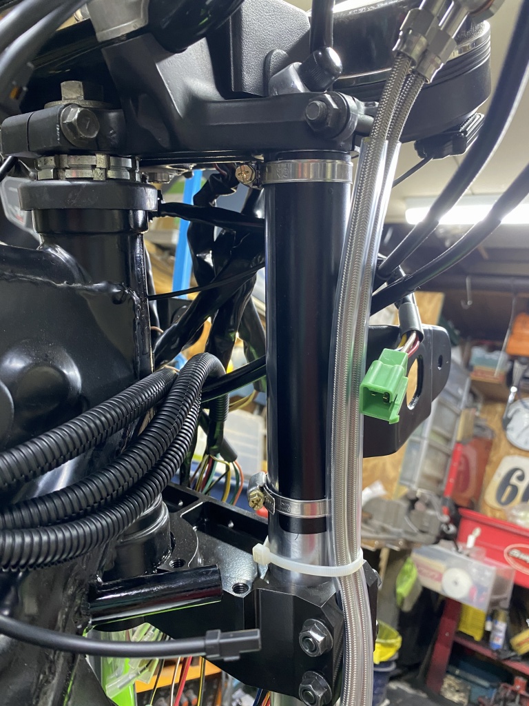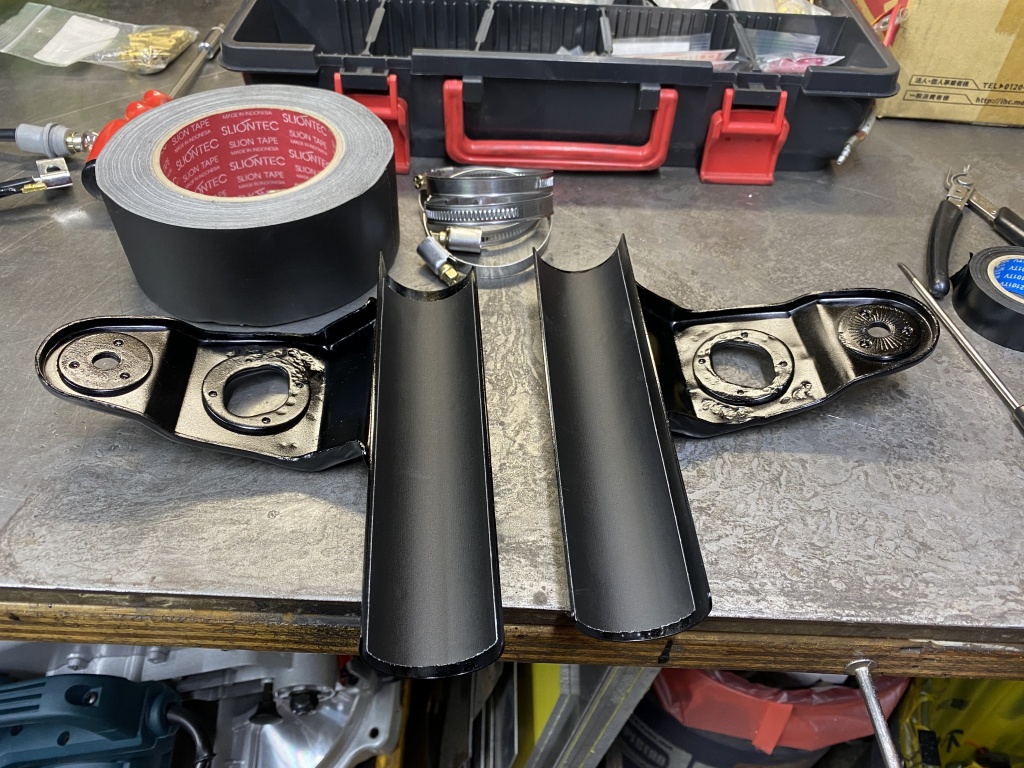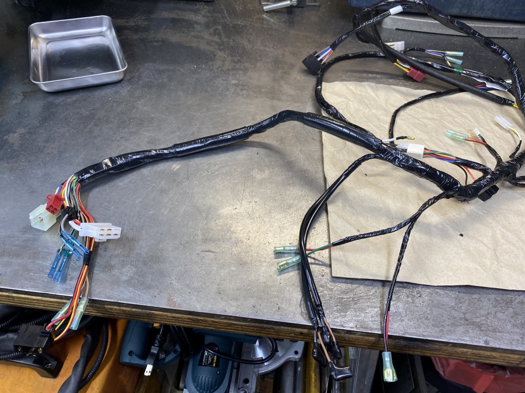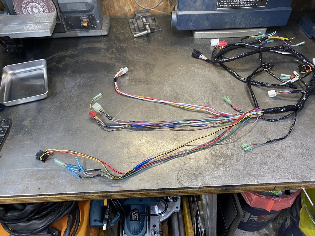 タンク付近の取り回し改良のため、ハーネス前半を改造してスリム化します。