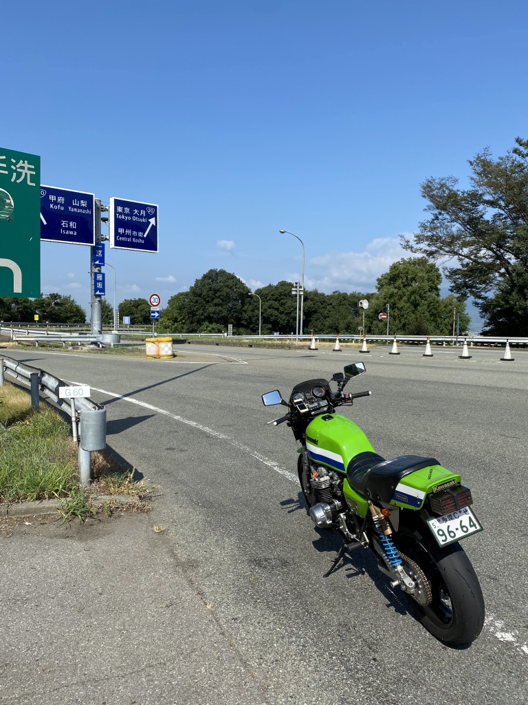 帰りの勝沼ICで高速を下ります。ここまでで約200キロ走行、エンジン慣らしは終了し、ワインディングへ向かいます。