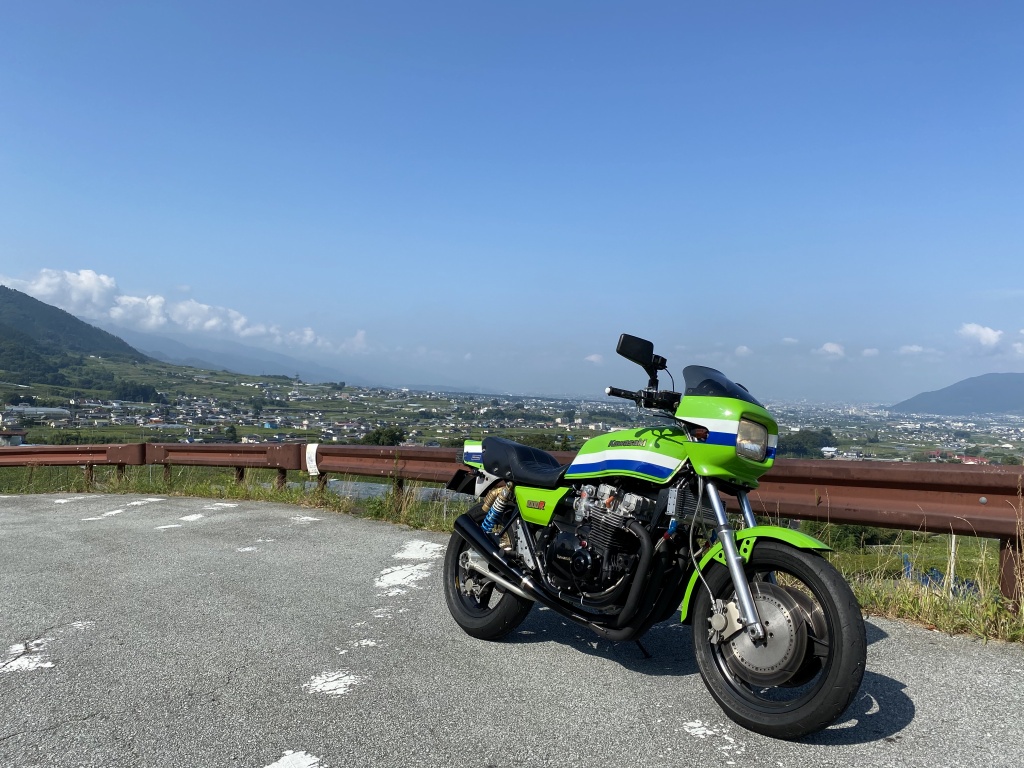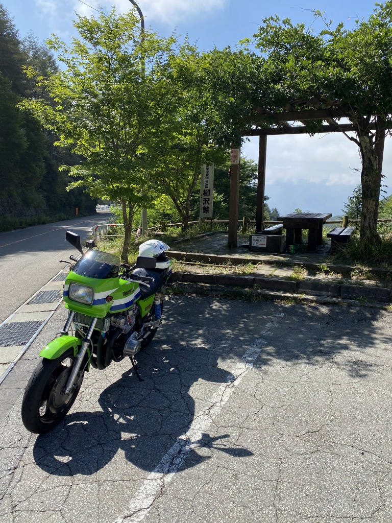 柳沢峠に到着。キャブセッティングと車体の仕上がりは9割方OK、フィーリングはデモ車1号とほぼ同じ。